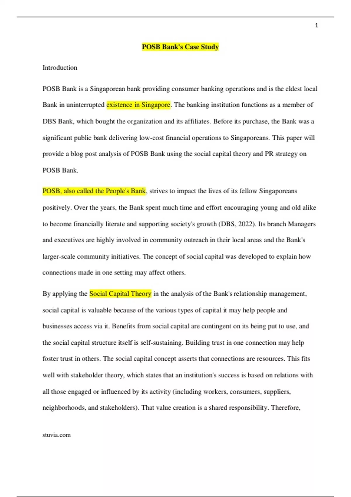POSB Bank is a Singaporean bank providing consumer banking operations and is the eldest local Bank in uninterrupted existence in Singapore. The banking institution functions as a member of DBS Bank, which bought the organization and its affiliates. Before its purchase, the Bank was a significant public bank delivering low-cost financial operations to Singaporeans. This paper will provide a blog post analysis of POSB Bank using the social capital theory and PR strategy on POSB Bank.