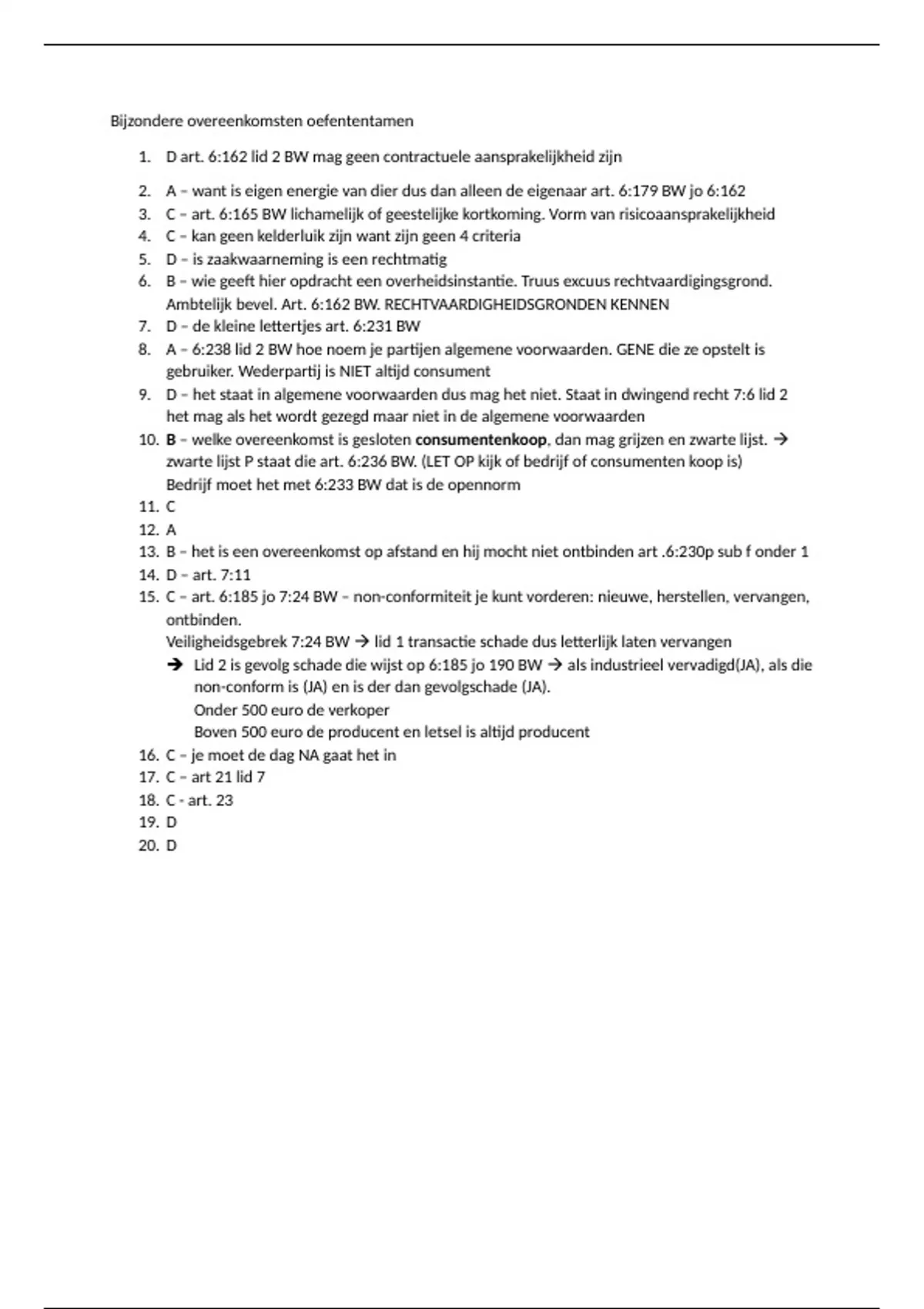 tentamen uitwerkingen bijzondere overeenkomsten erg lastig makkelijk te begrijpen zo