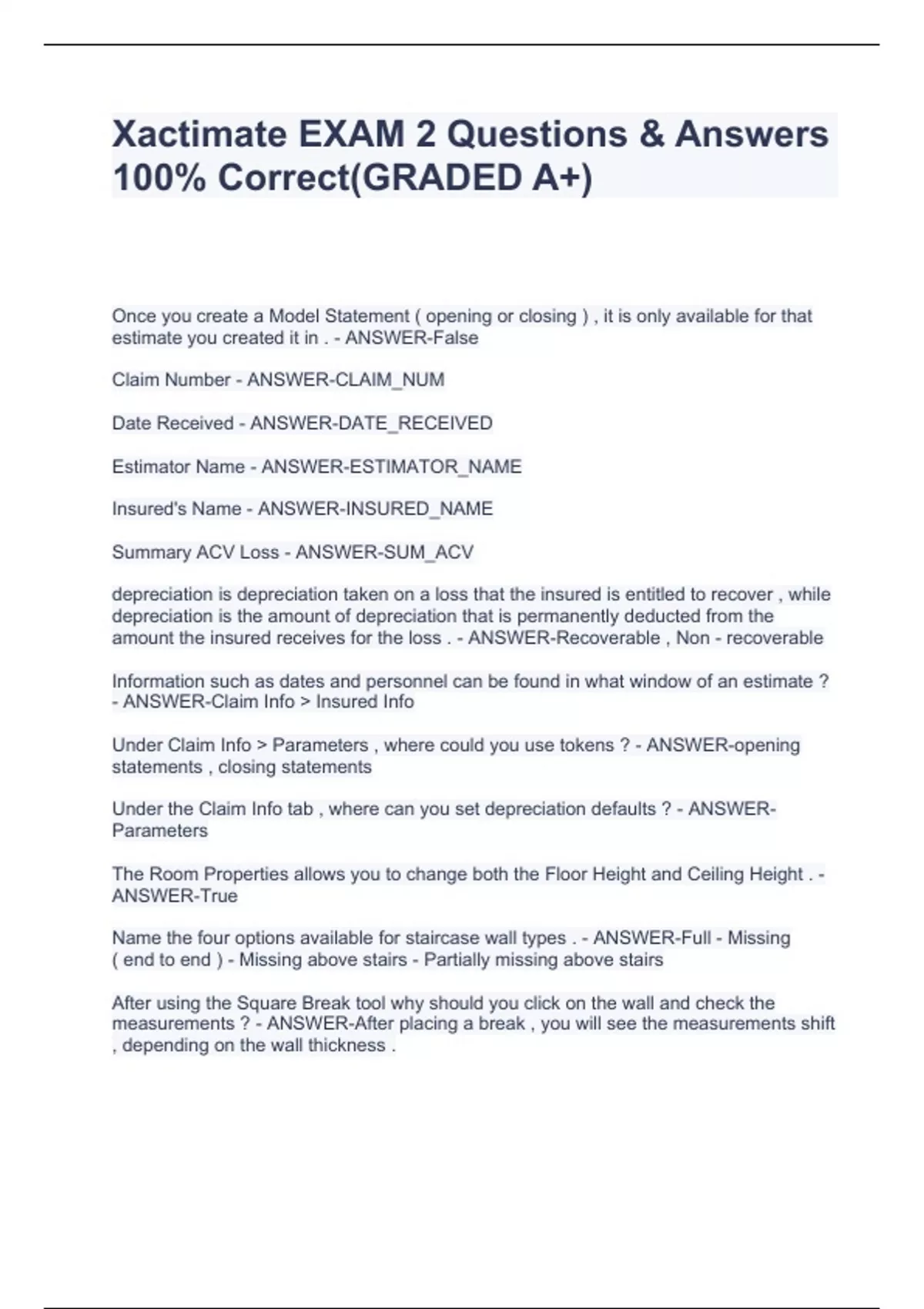 Xactimate EXAM 2 Questions & Answers 100% Correct(GRADED A+) Xactimate EXAM 2 Questions & Answers 100% Correct(GRADED A+) Xactimate EXAM 2 Questions & Answers 100% Correct(GRADED A+) Xactimate EXAM 2 Questions & Answers 100% Correct(GRADED A+) Xactimate EXAM 2 Questions & Answers 100% Correct(GRADED A+) Xactimate EXAM 2 Questions & Answers 100% Correct(GRADED A+) Xactimate EXAM 2 Questions & Answers 100% Correct(GRADED A+) Xactimate EXAM 2 Questions & Answers 100% Correct(GRADED A+) Xactimate EXAM 2 Questions & Answers 100% Correct(GRADED A+) Xactimate EXAM 2 Questions & Answers 100% Correct(GRADED A+) Xactimate EXAM 2 Questions & Answers 100% Correct(GRADED A+)