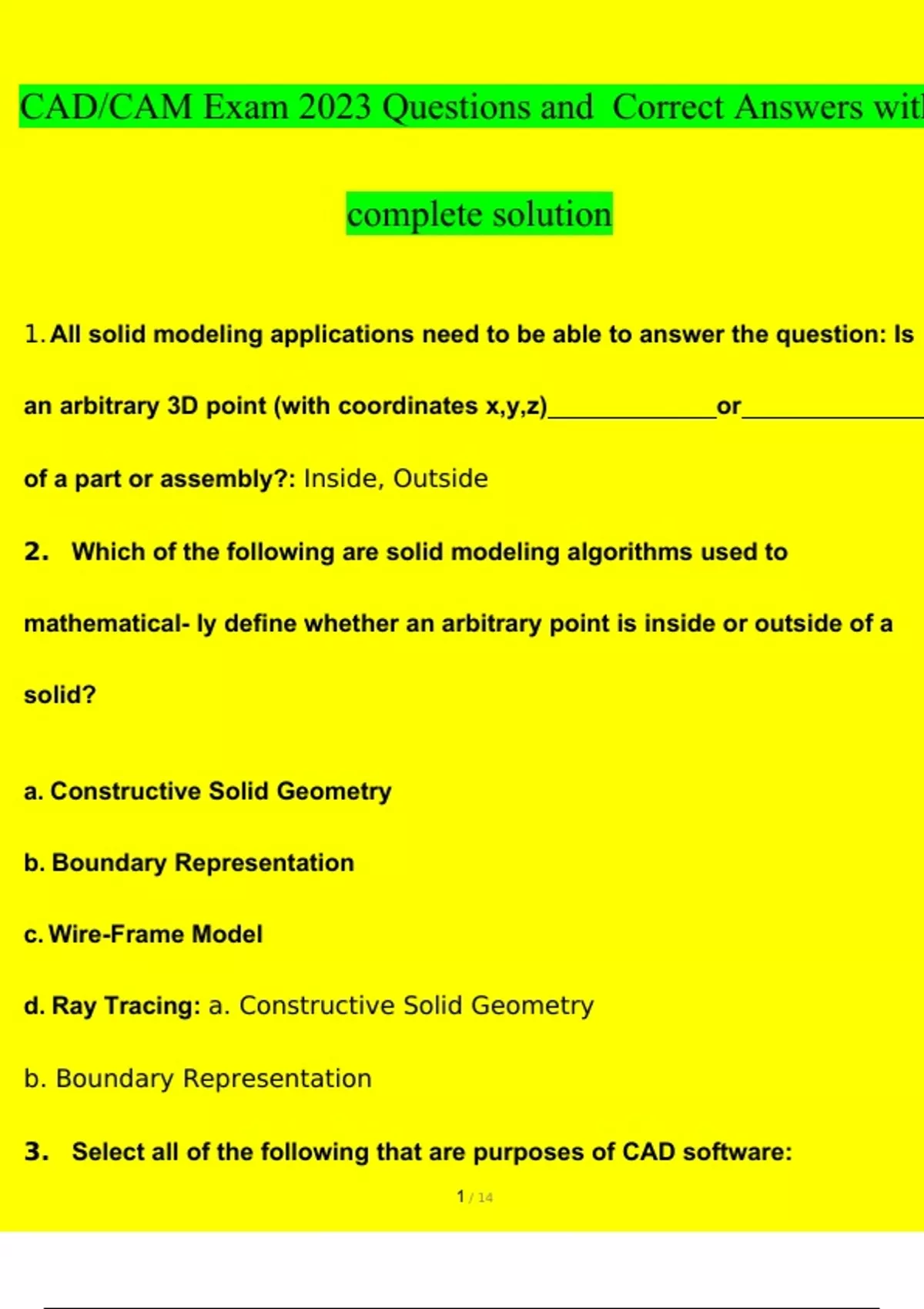CAD/CAM Exam 2023 Questions and Answers with complete solution