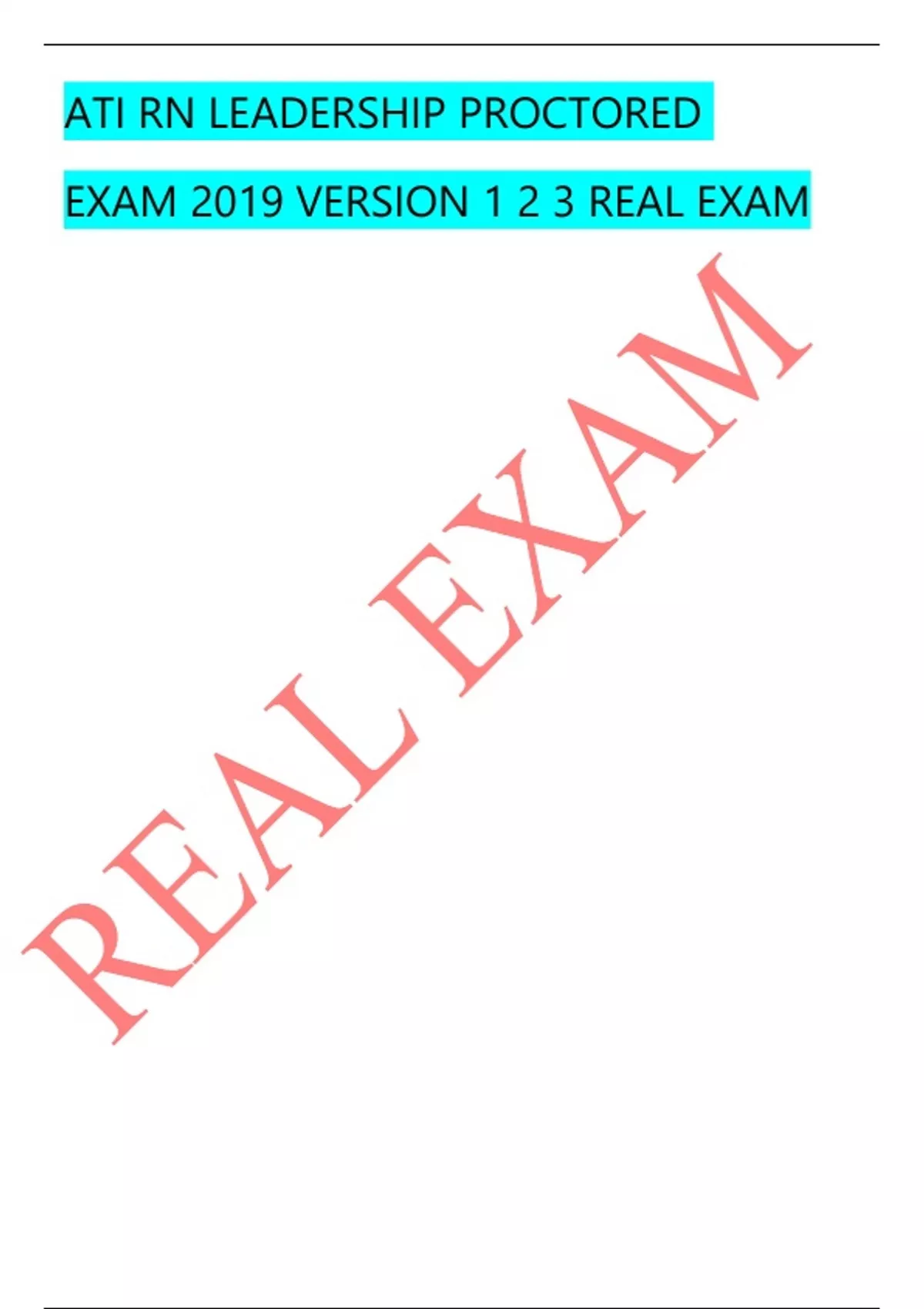 ATI RN LEADERSHIP PROCTORED EXAM 2019 VERSION 1 2 3 REAL EXAM