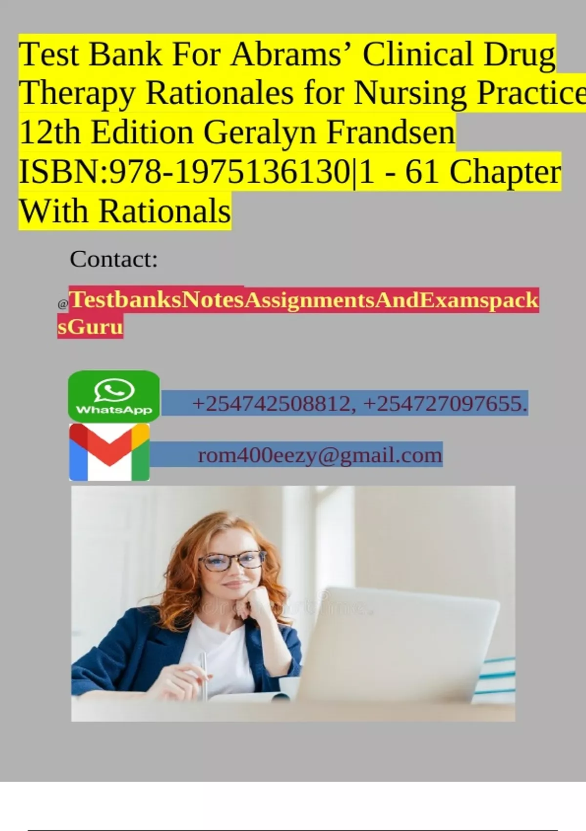 Test Bank For Abrams’ Clinical Drug Therapy Rationales for Nursing Practice 12th Edition Geralyn Frandsen ISBN:978-1975136130|1 - 61 Chapter With RationalsTest Bank For Abrams’ Clinical Drug Therapy Rationales for Nursing Practice 12th Edition Geralyn Frandsen ISBN:978-1975136130|1 - 61 Chapter With RationalsvTest Bank For Abrams’ Clinical Drug Therapy Rationales for Nursing Practice 12th Edition Geralyn Frandsen ISBN:978-1975136130|1 - 61 Chapter With RationalsTest Bank For Abrams’ Clinical Drug Therapy Rationales for Nursing Practice 12th Edition Geralyn Frandsen ISBN:978-1975136130|1 - 61 Chapter With RationalsTest Bank For Abrams’ Clinical Drug Therapy Rationales for Nursing Practice 12th Edition Geralyn Frandsen ISBN:978-1975136130|1 - 61 Chapter With RationalsTest Bank For Abrams’ Clinical Drug Therapy Rationales for Nursing Practice 12th Edition Geralyn Frandsen ISBN:978-1975136130|1 - 61 Chapter With Rationalsv