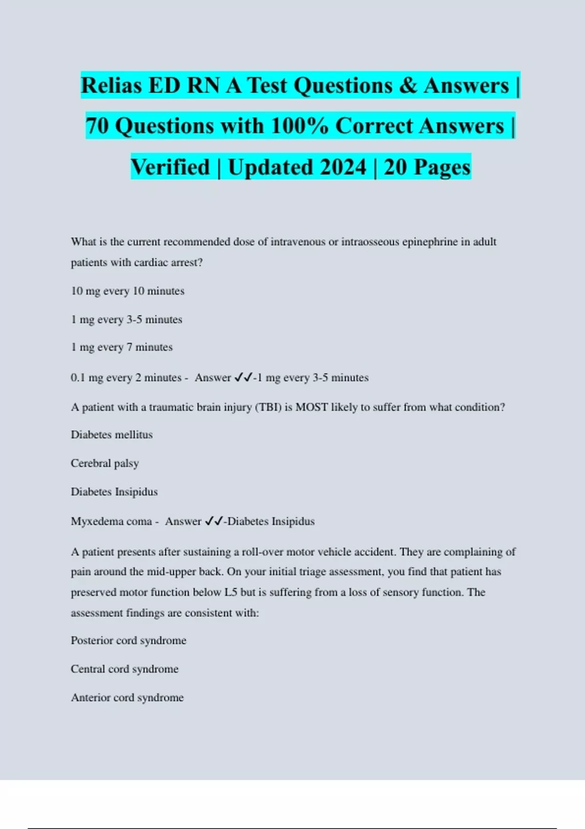 Relias ED RN A Test Questions & Answers | 70 Questions with 100% Correct Answers | Verified | Updated 2024