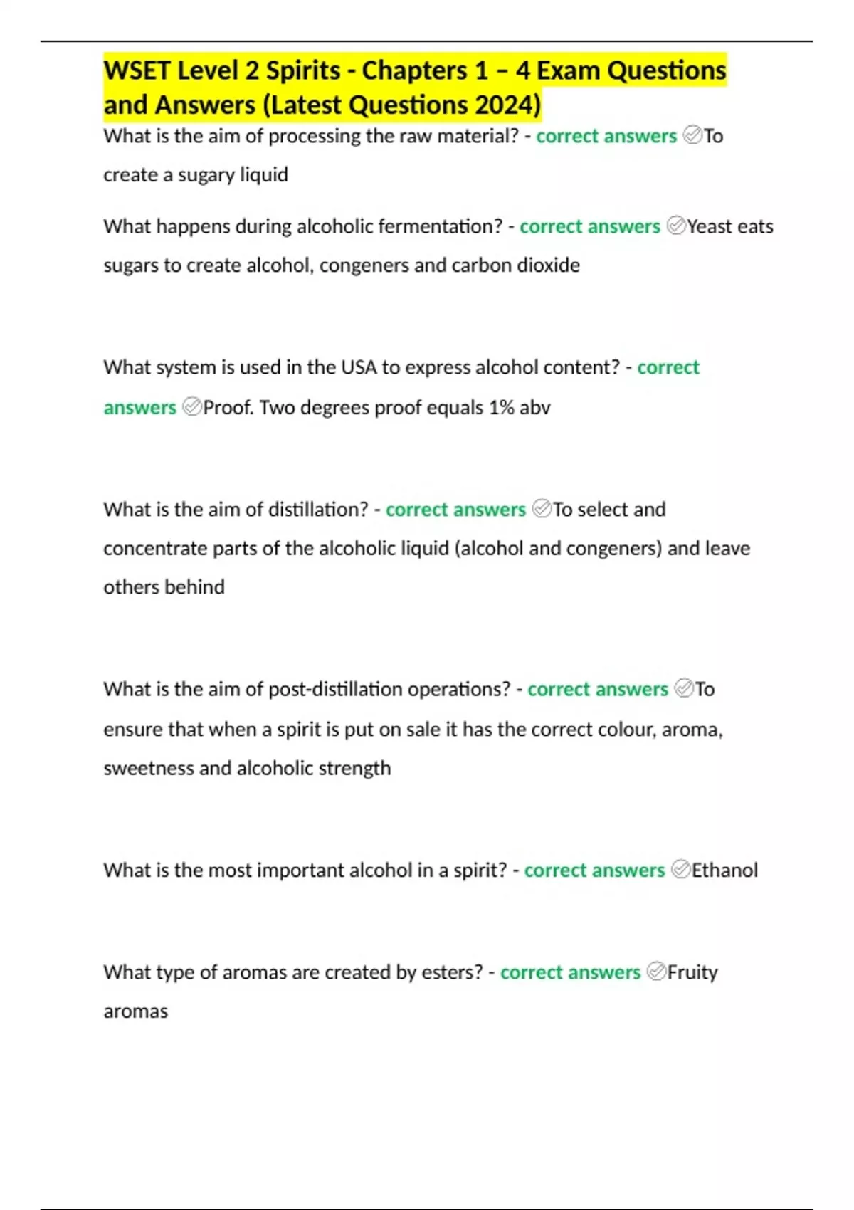 WSET Level 2 Spirits - Chapters 1 – 4 Exam Questions and Answers (Latest Questions 2024)WSET Level 2 Spirits - Chapters 1 – 4 Exam Questions and Answers (Latest Questions 2024)