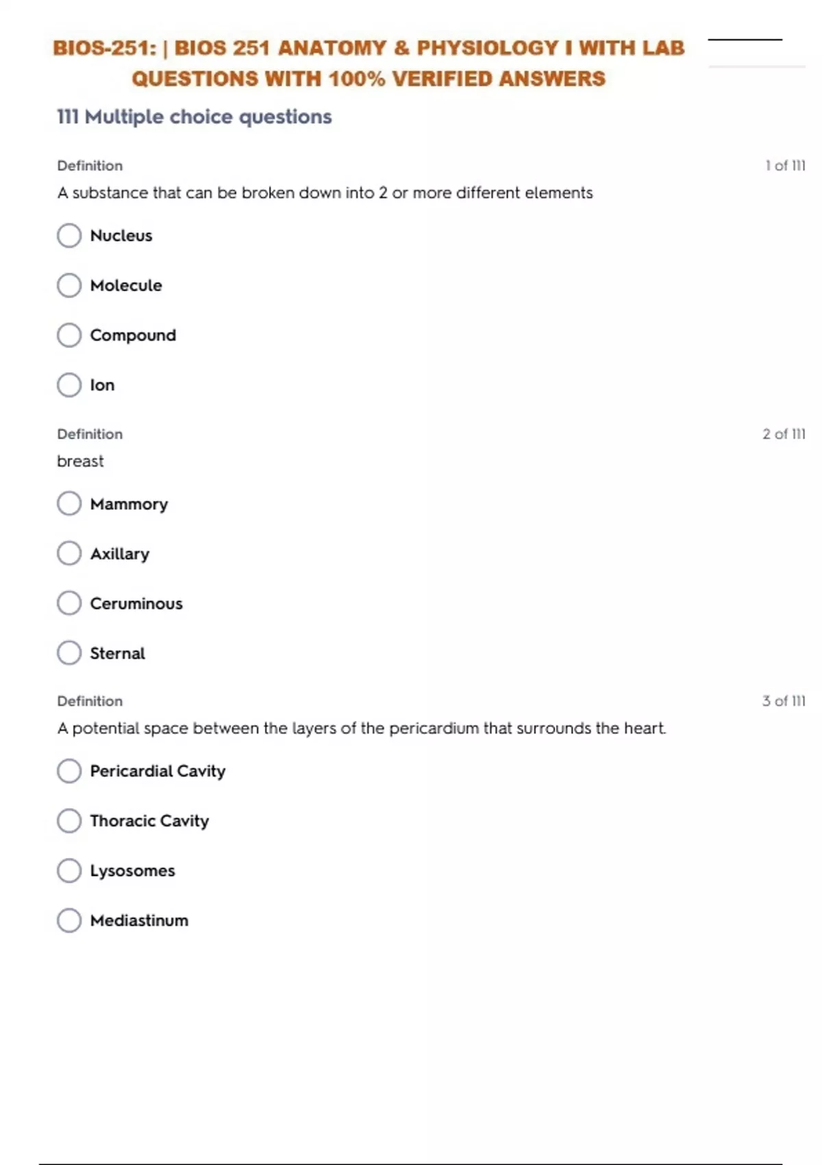 COMPLETE BUNDLE PACK FOR BIOS 251 ANATOMY & PHYSIOLOGY I WITH LAB EXAMS| GRADED A+