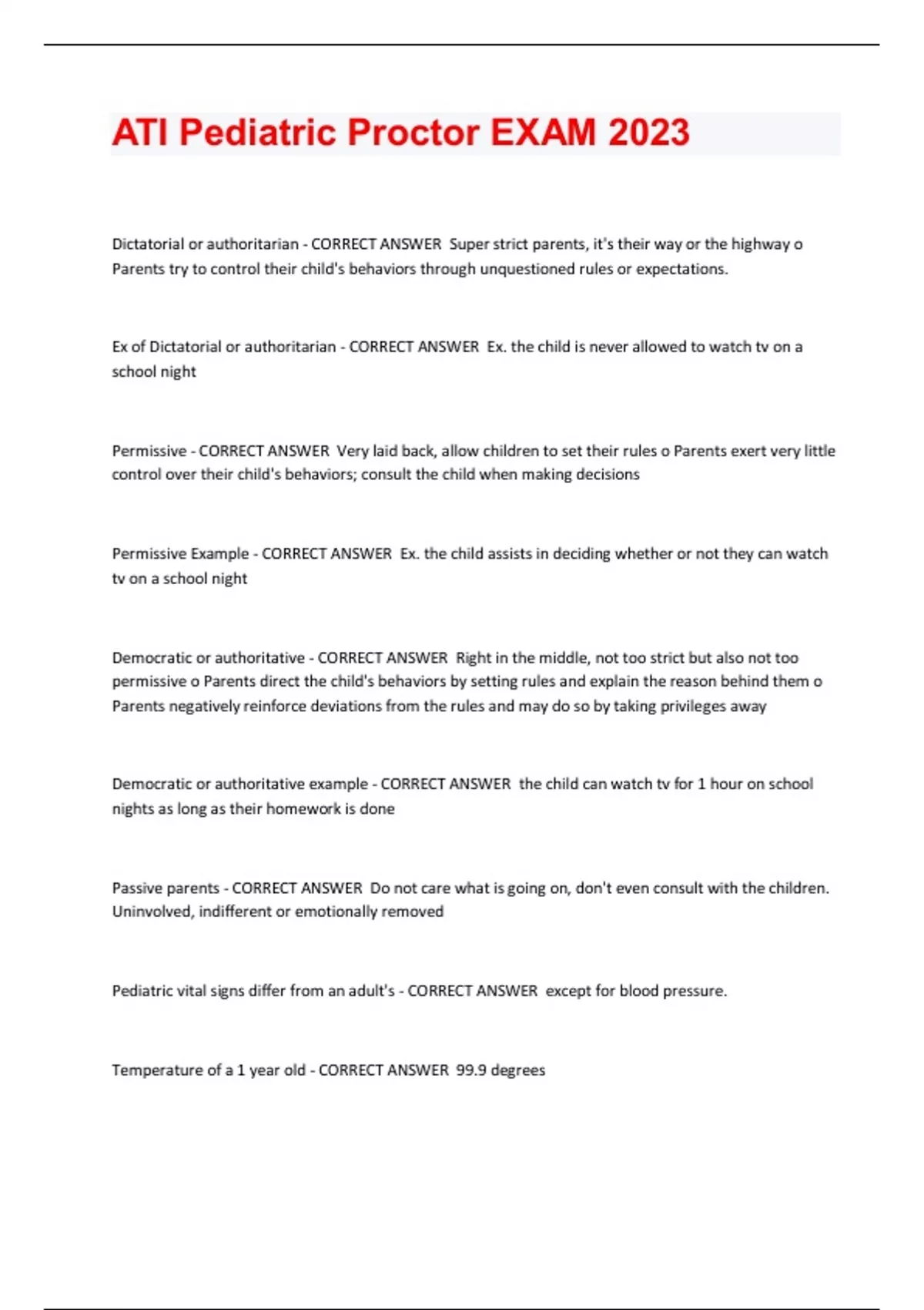 ATI Pediatric Proctor EXAM 2023