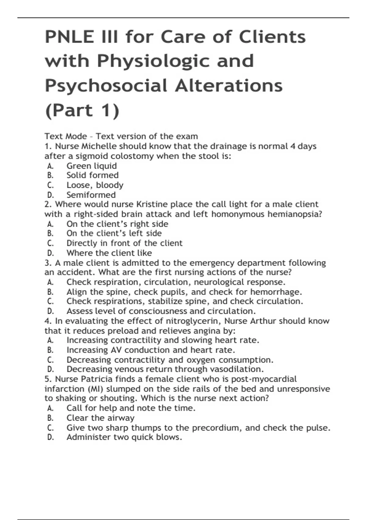 PNLE III for Care of Clients with Physiologic and Psychosocial Alterations