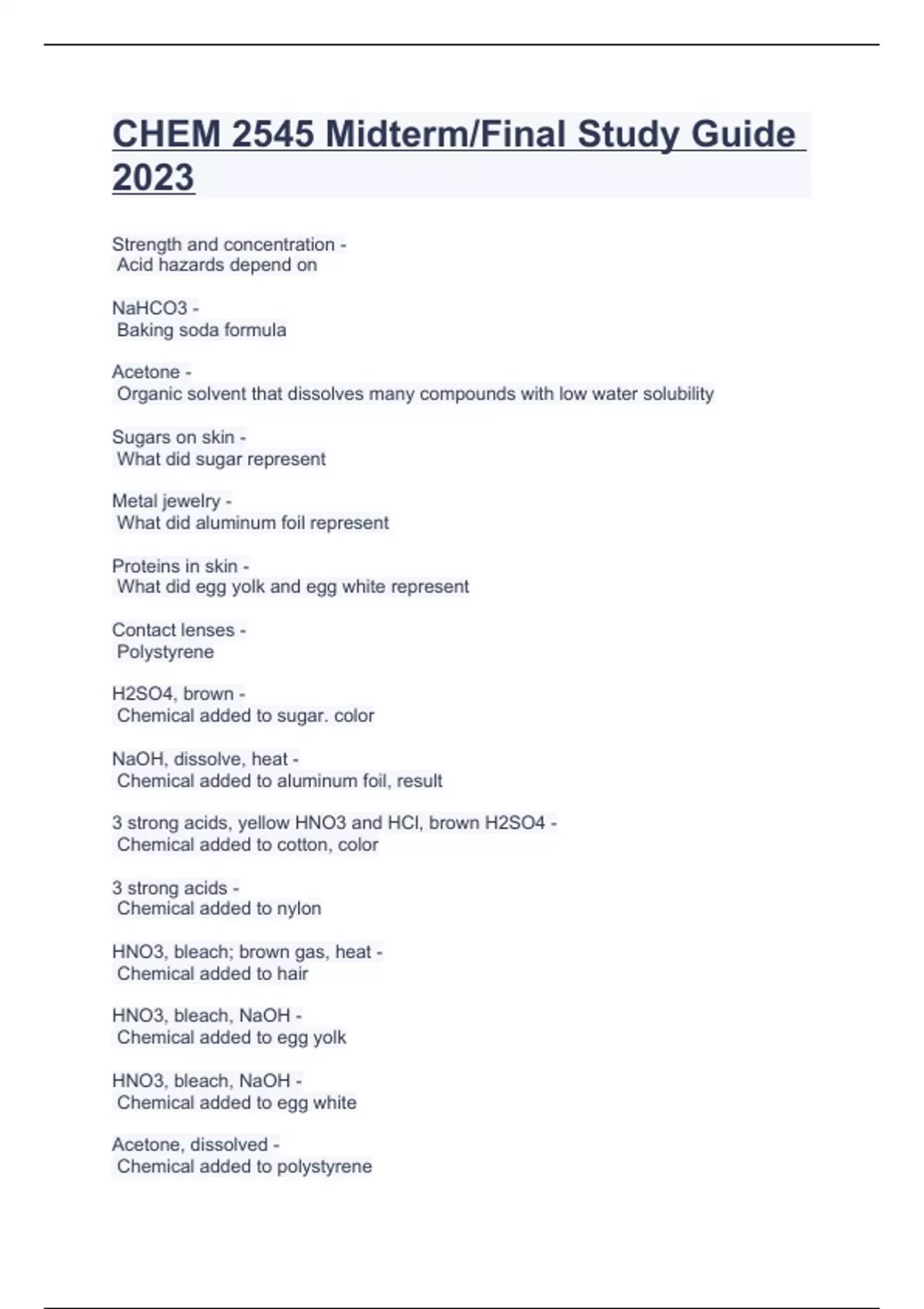 CHEM 2545 Midterm Final Study Guide 2023