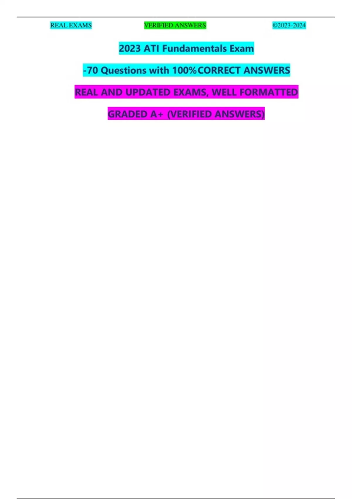 2023 ATI Fundamentals Exam -70 Questions with 100%CORRECT ANSWERS REAL AND UPDATED EXAMS, WELL FORMATTED GRADED A+ (VERIFIED ANSWERS)