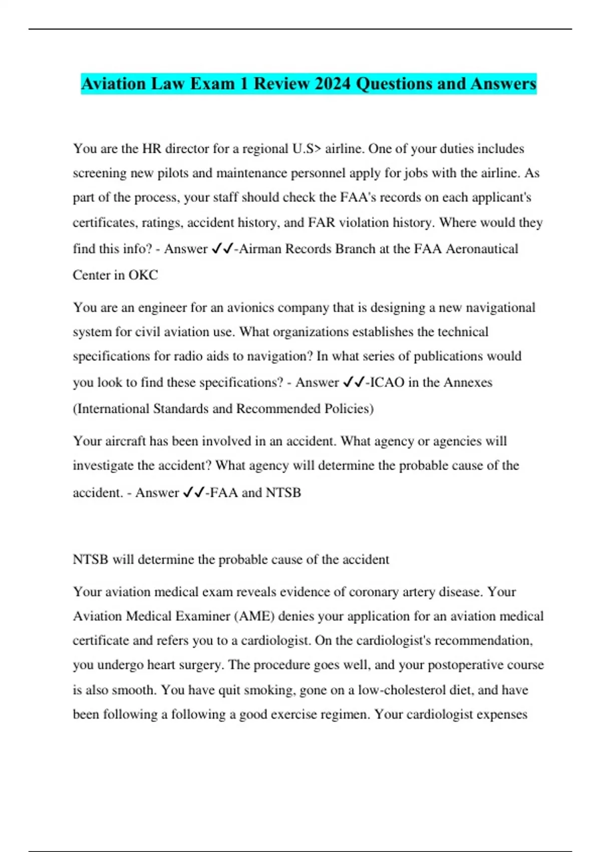 Aviation Law Exam 1 Review 2024 Questions and Answers
