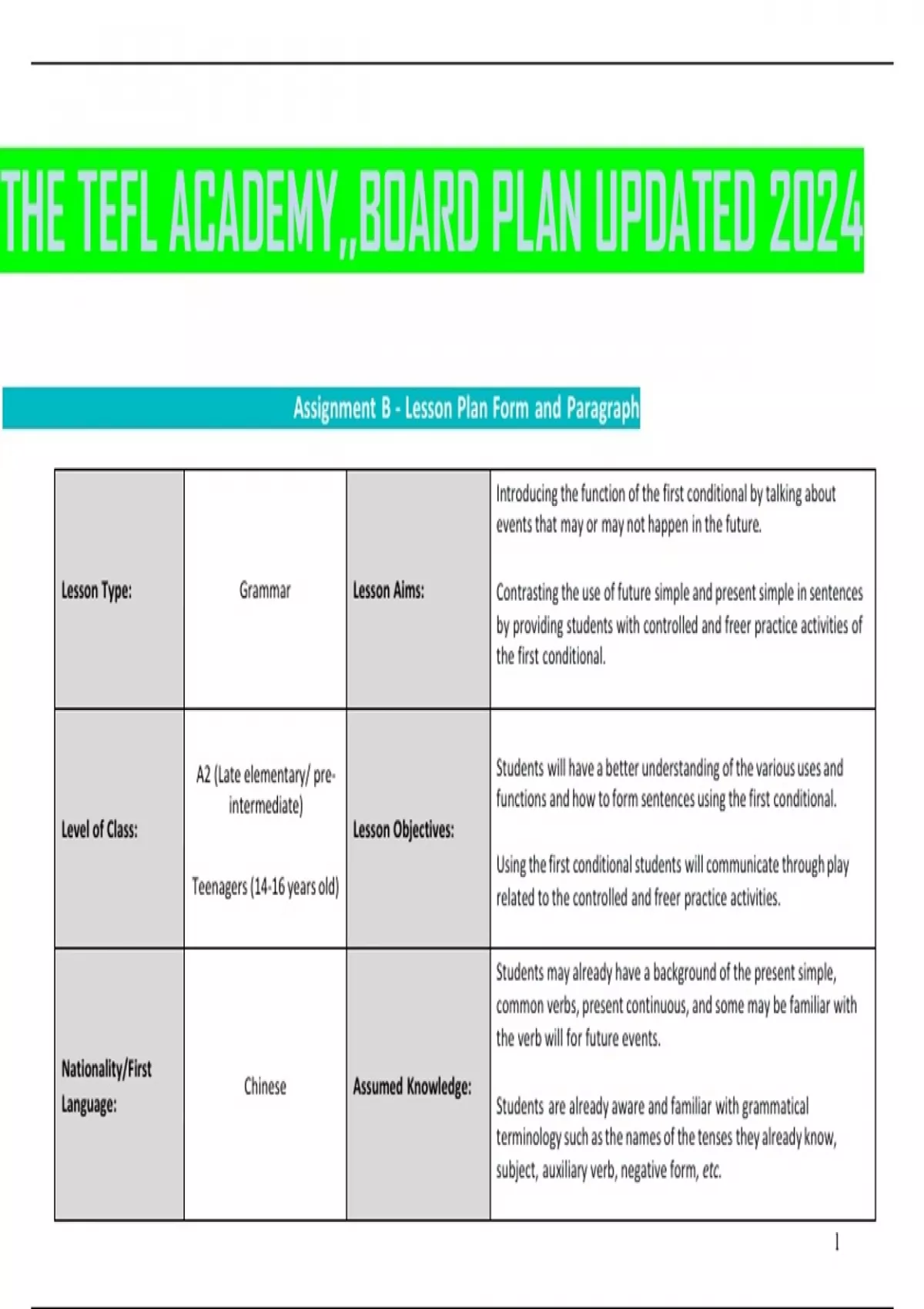 THE TEFL ACADEMY,,BOARD PLAN UPDATED 2024