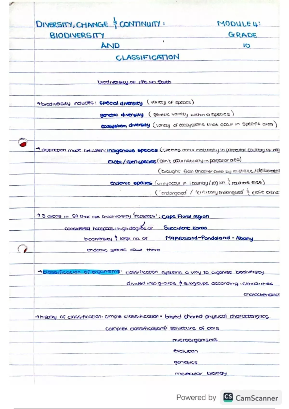 Summary Diversity, Change&Continuity: Biodiversity&Classification GR10