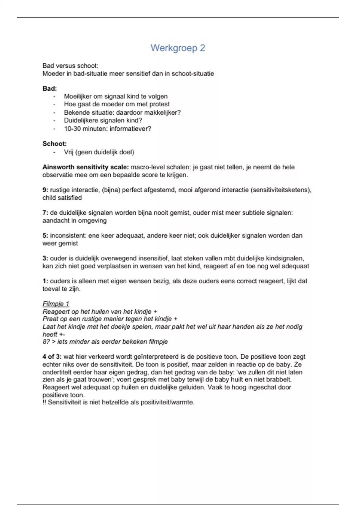 echter niks over de sensitiviteit. De toon is positief, maar zelden in reactie op de baby. Ze