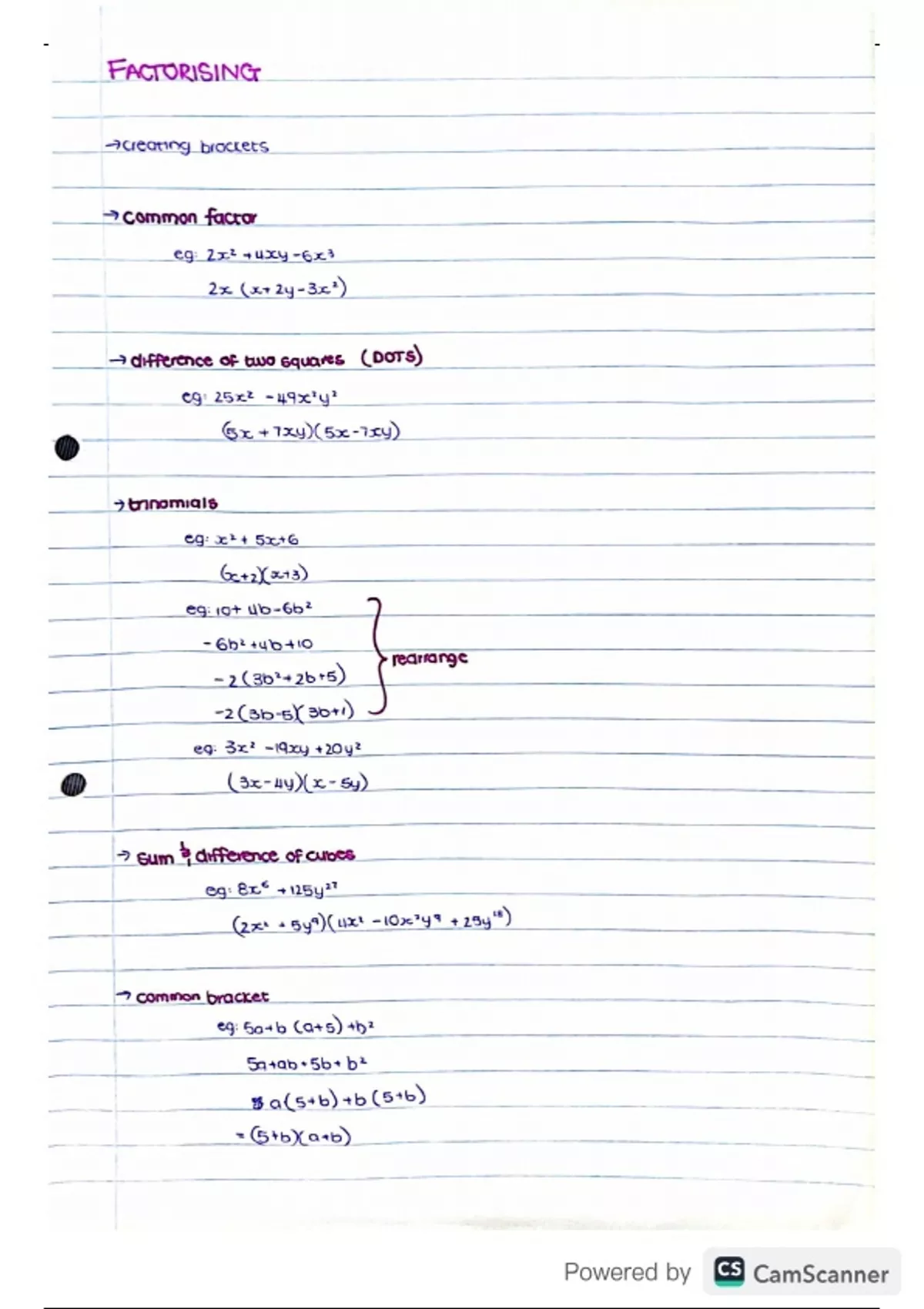 Summary Factorising GR10