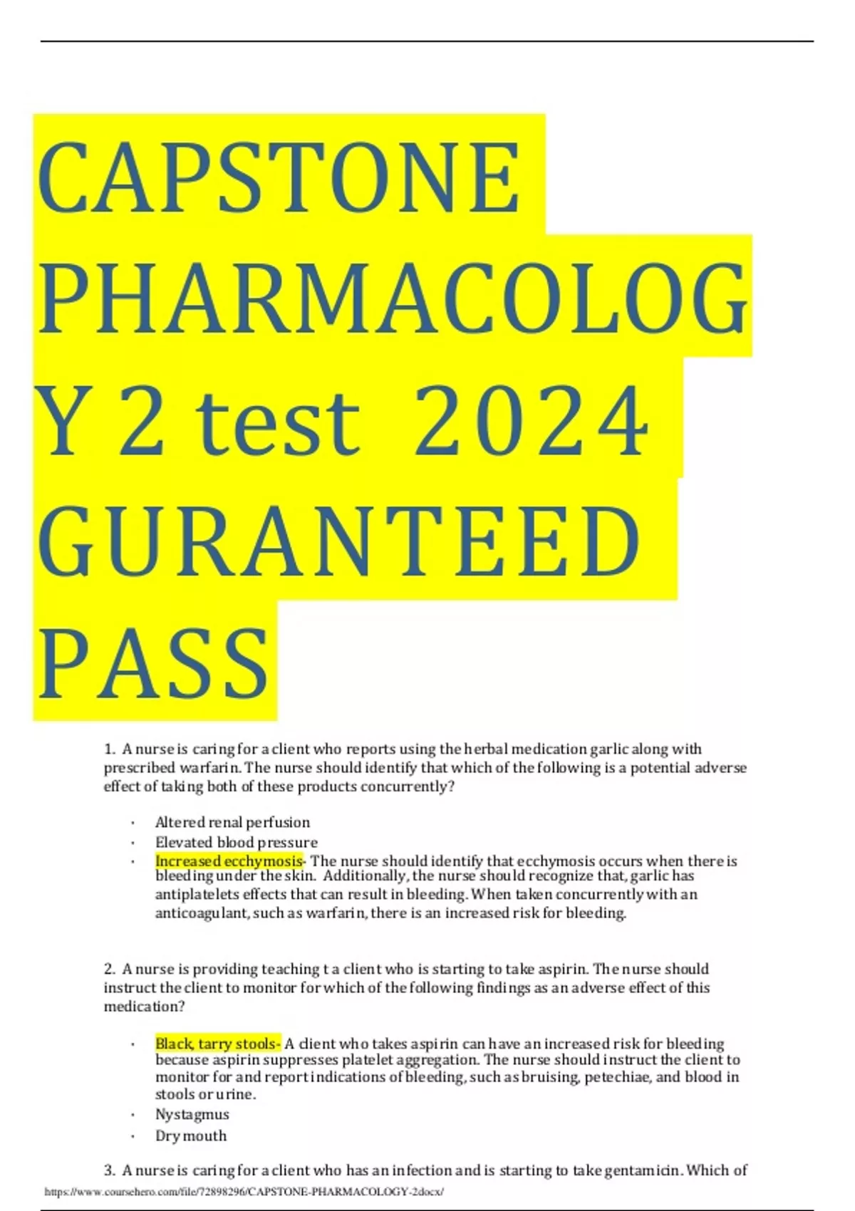 CAPSTONE PHARMACOLOGY 2 test 2024 GURANTEED PASS