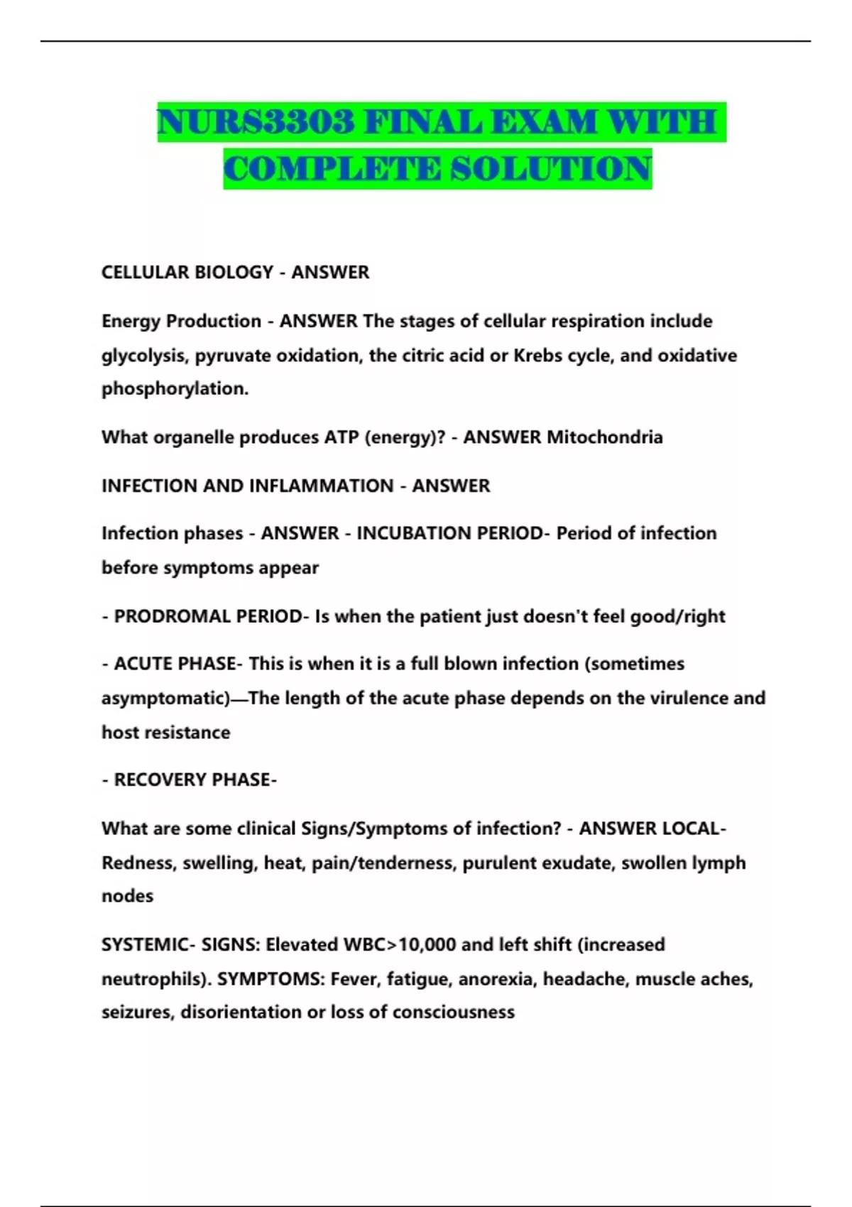 NURS3303 FINAL EXAM WITH COMPLETE SOLUTION