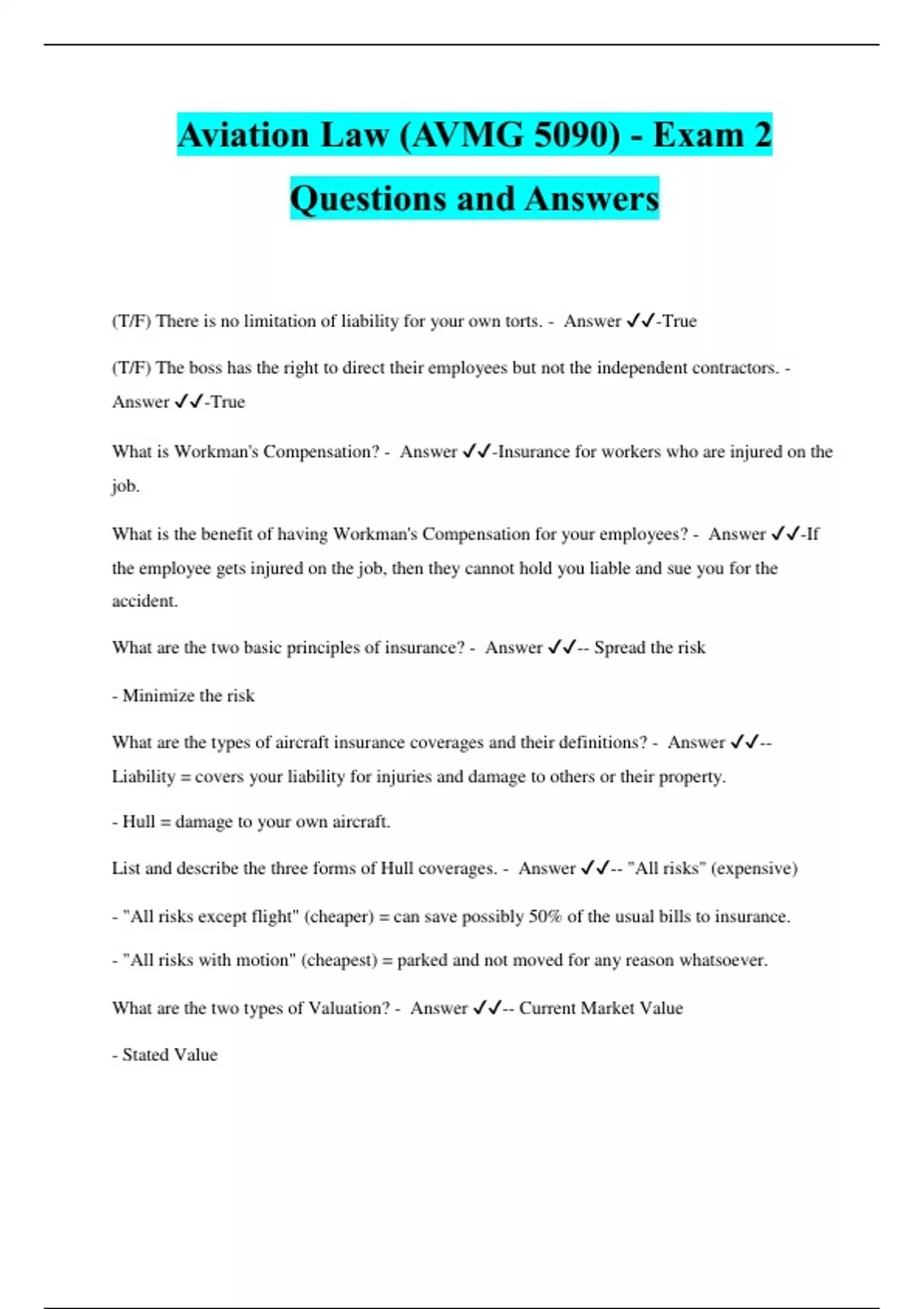 Aviation Law (AVMG 5090) - Exam 2 Questions and Answers