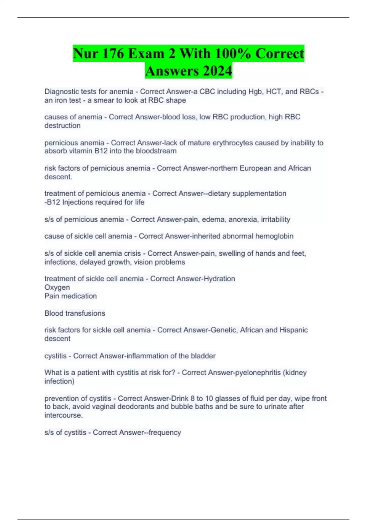 Nur 176 Exam 2 With 100% Correct Answers 2024