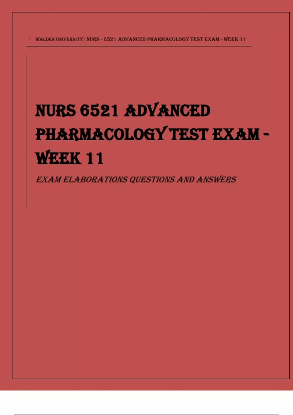 WALDEN UNIVERSITY_ NURS 6521 Advanced Pharmacology Test Exam - Week 11 Exam Elaborations Questions and Answers Latest Verified Review 2024 Practice Questions and Answers for Exam Preparation, 100% Correct with Explanations, Highly Recommended, Download to