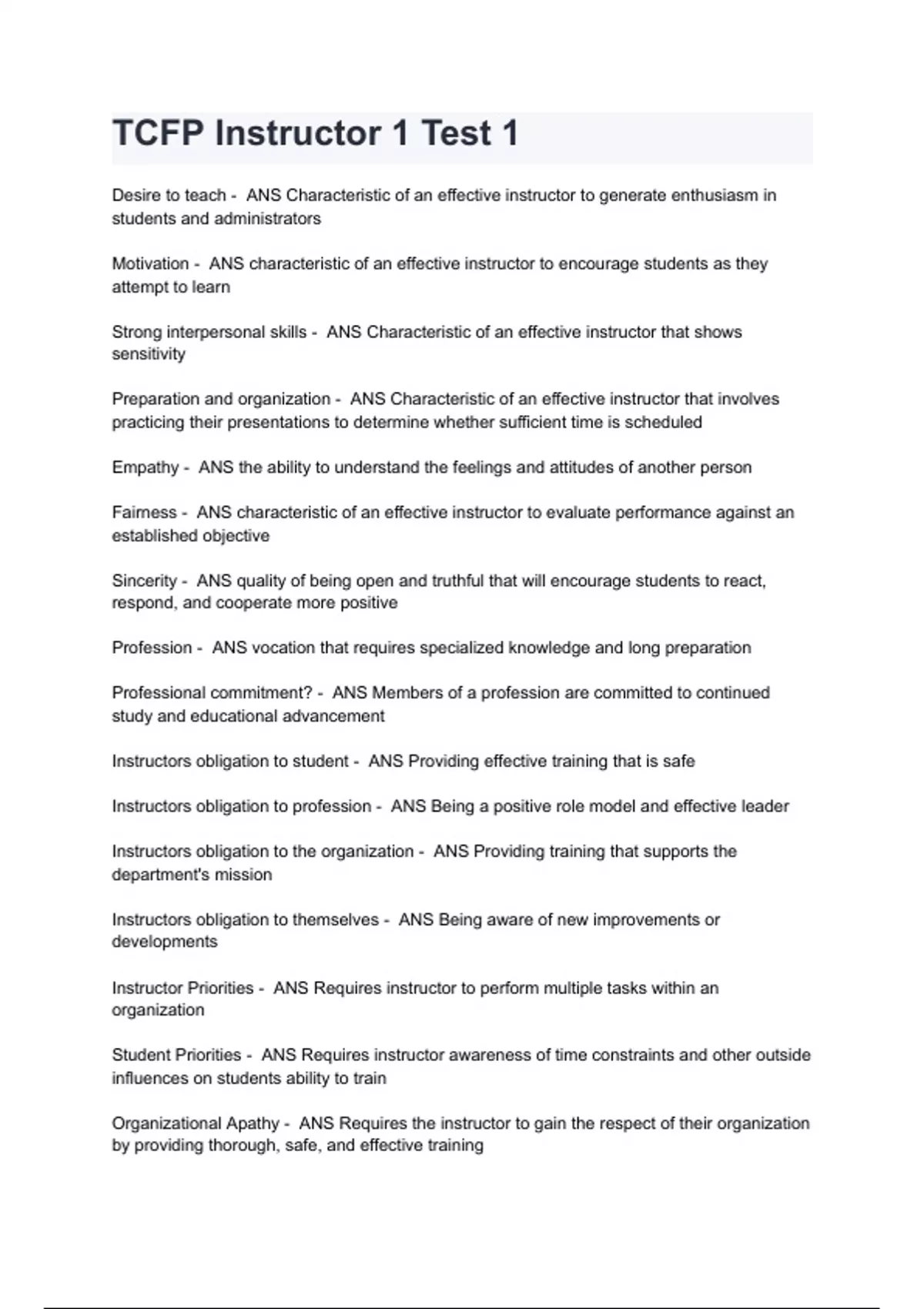 TCFP Instructor 1 Test 1 Question & Answers A+GRADED &VERIFIED