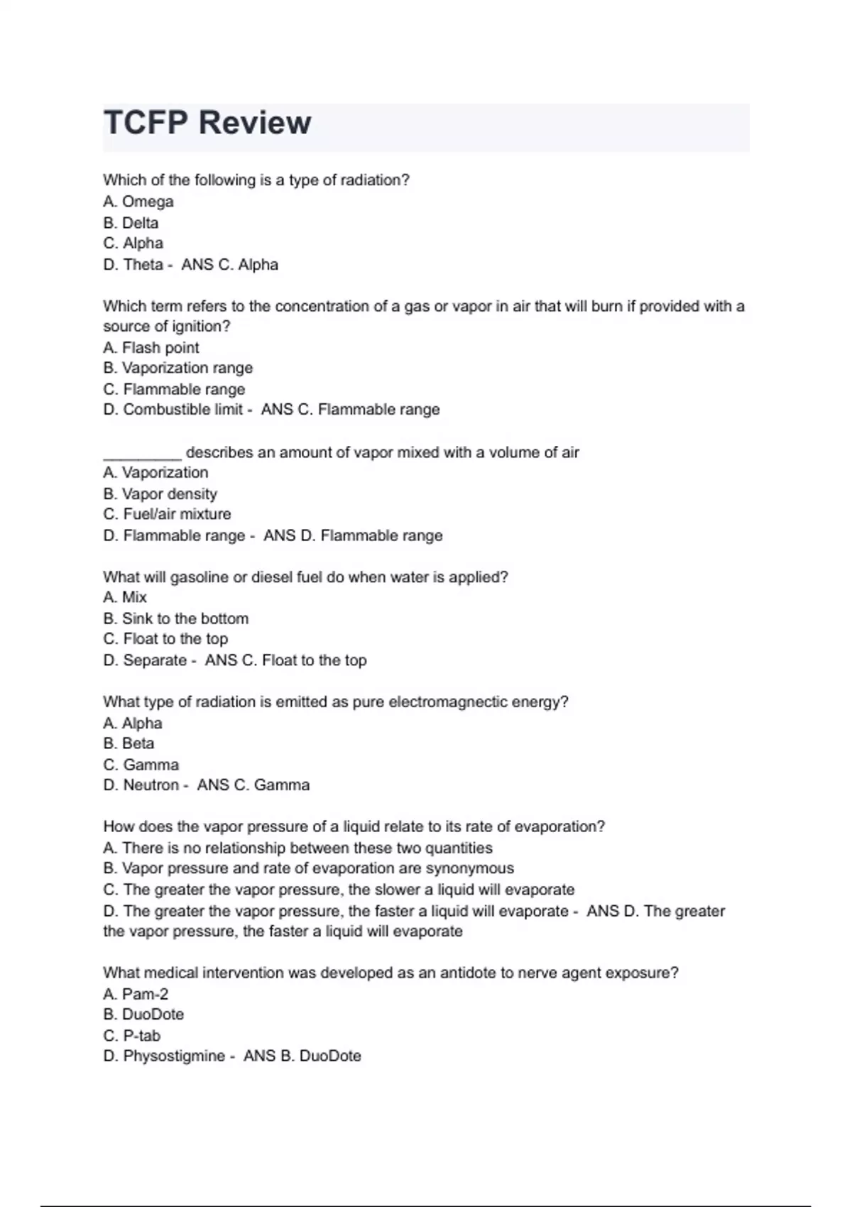 TCFP Review Question with correct Answers A+ GRADED & VERIFIED