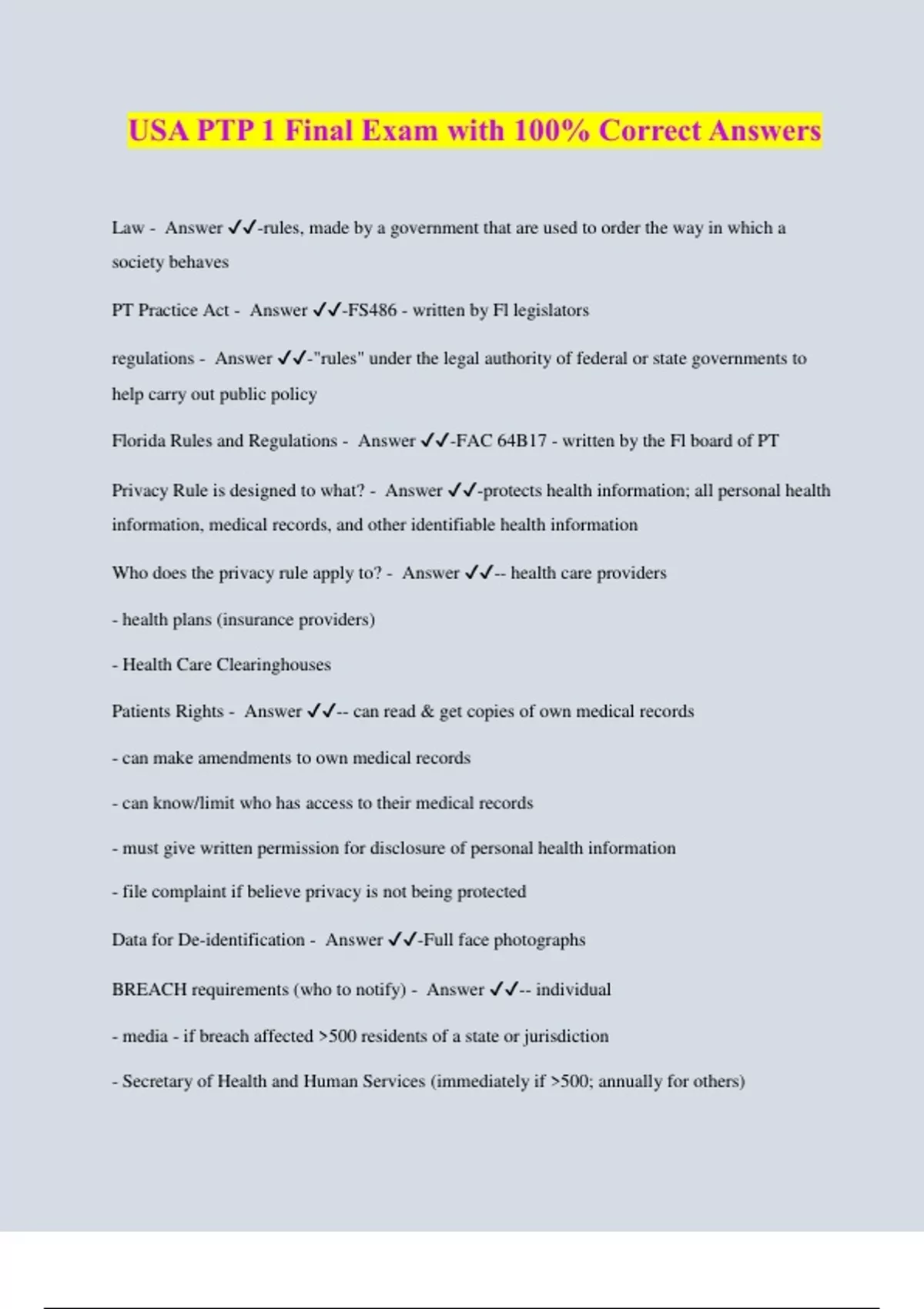 usa ptp 1 final exam with 100 correct answers