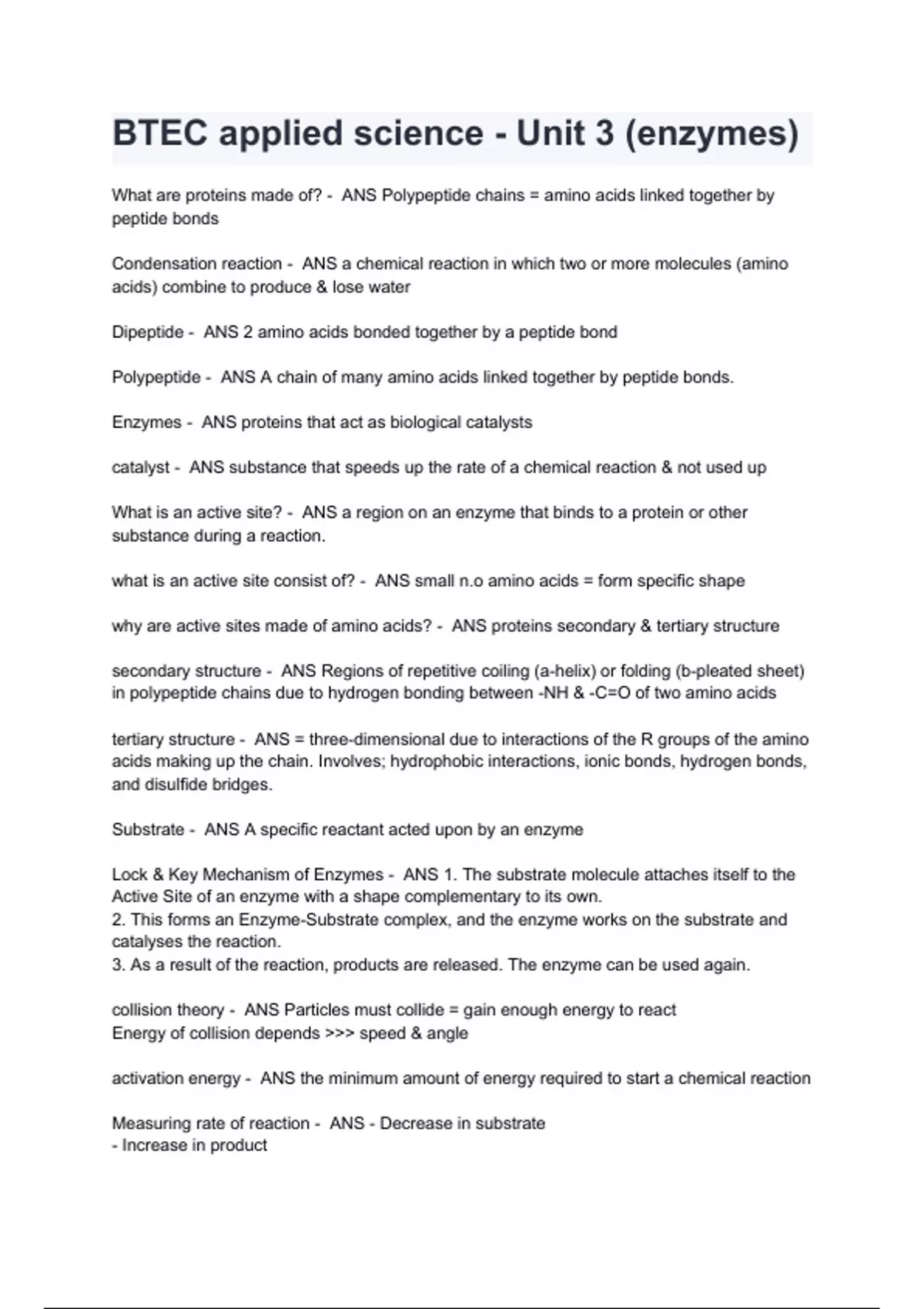 BTEC applied science - Unit 3 (enzymes) Questions with correct Answers A+GRADED & VERIFIED