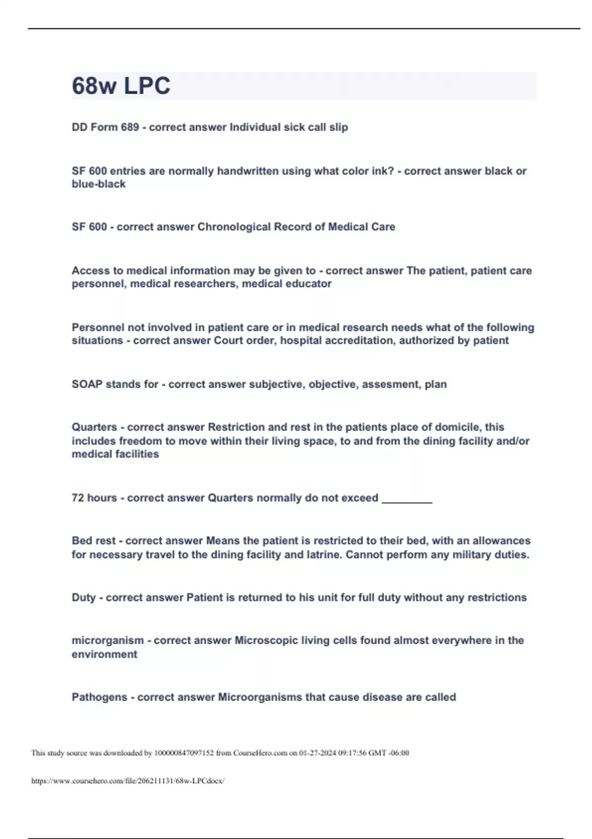 This study source was downloaded by 100000847097152 from CourseHero.com on 01-27-2024 09:17:56 GMT -06:00