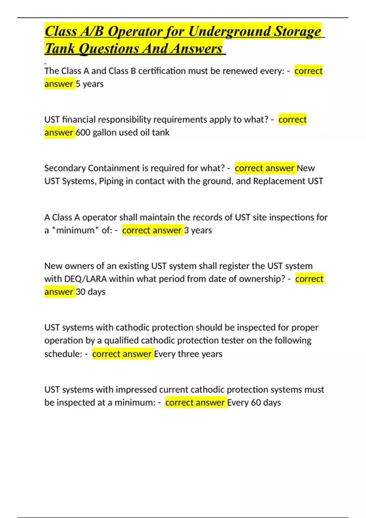Class A/B Operator for Underground Storage Tank Questions And Answers