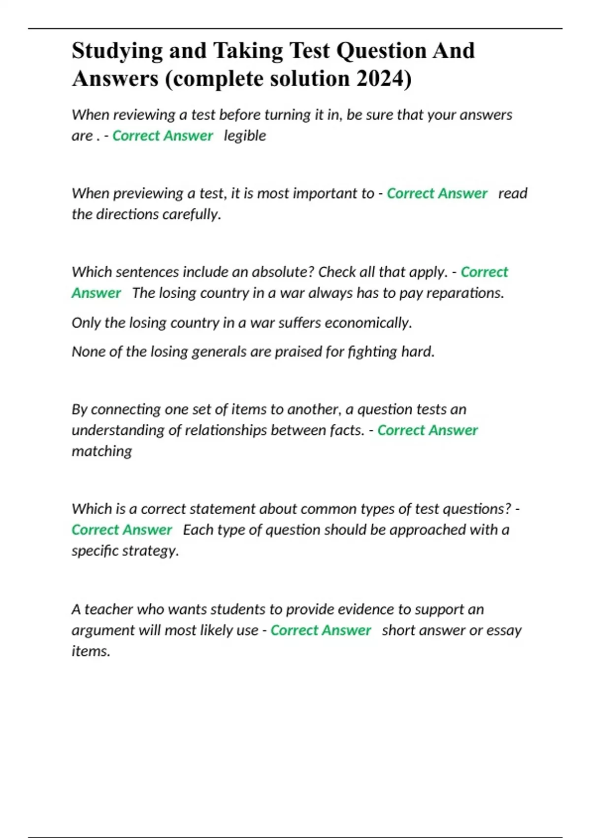 Studying and Taking Test Question And Answers (complete solution 2024)