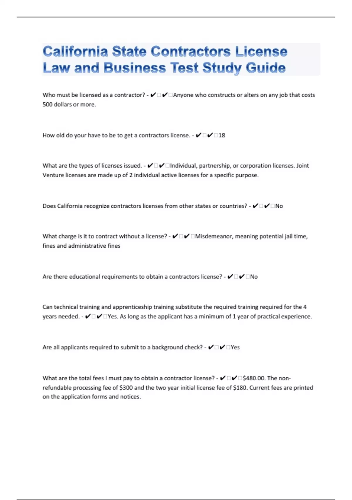 California State Contractors License Law and Business 177 Test Study Guide Test Question Review With Correct Answers |D0wnload to score A+