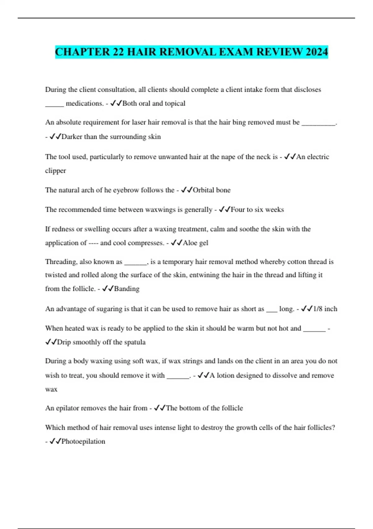 CHAPTER 22 HAIR REMOVAL EXAM REVIEW 2024