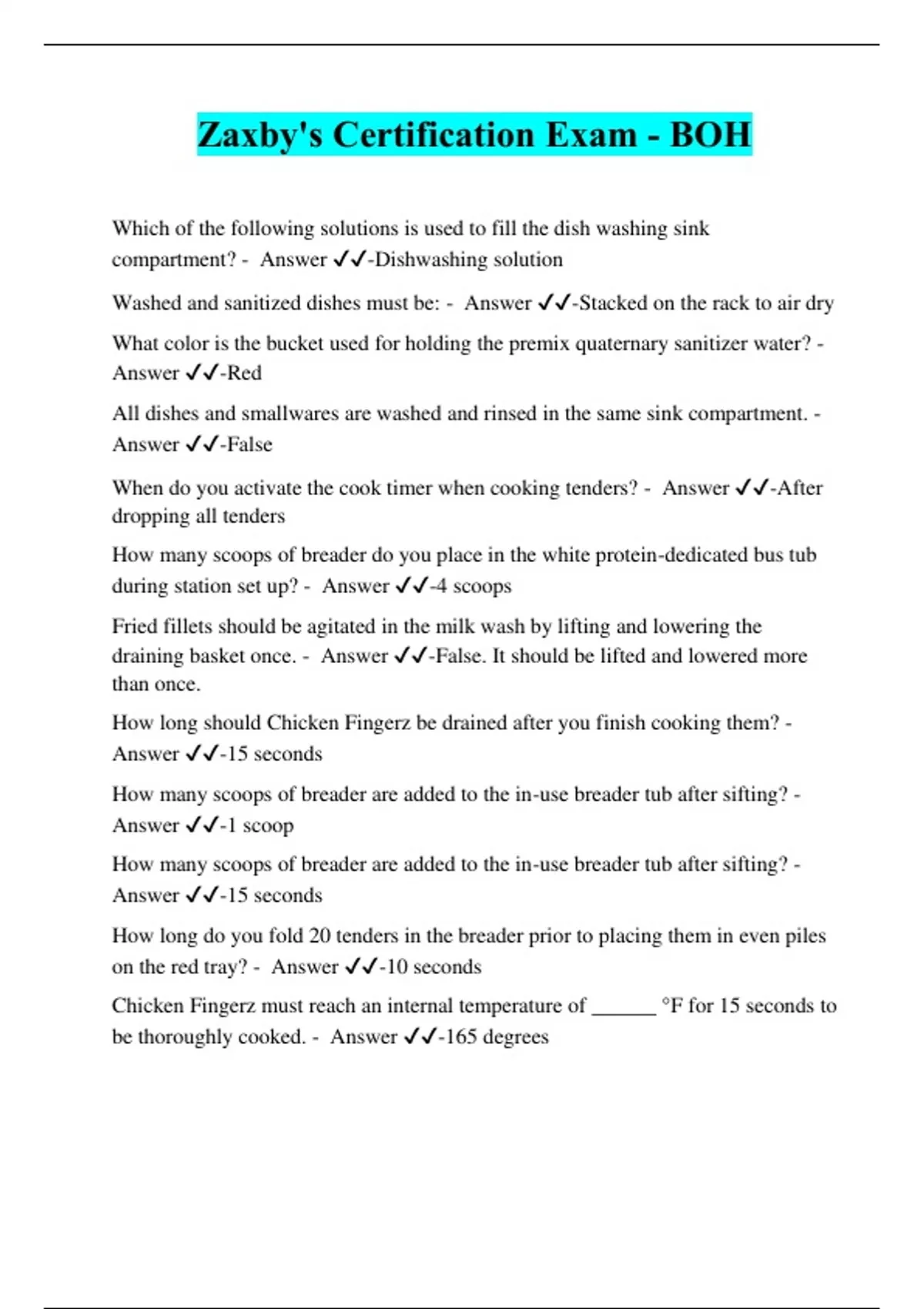Zaxby's Certification Exam - BOH