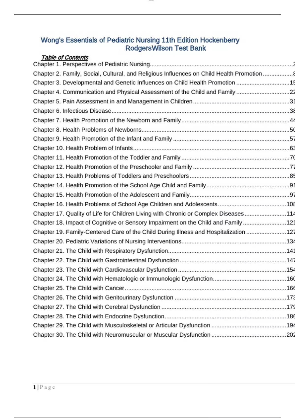 Test Bank Wong’s Essentials of Pediatric Nursing 11th Edition Hockenberry Rodgers Wilson