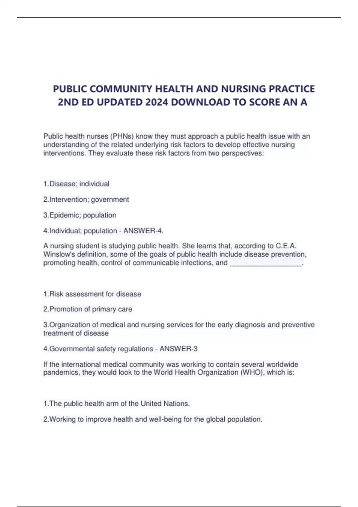 PUBLIC COMMUNITY HEALTH AND NURSING PRACTICE 2ND ED UPDATED 2024 DOWNLOAD TO SCORE AN A