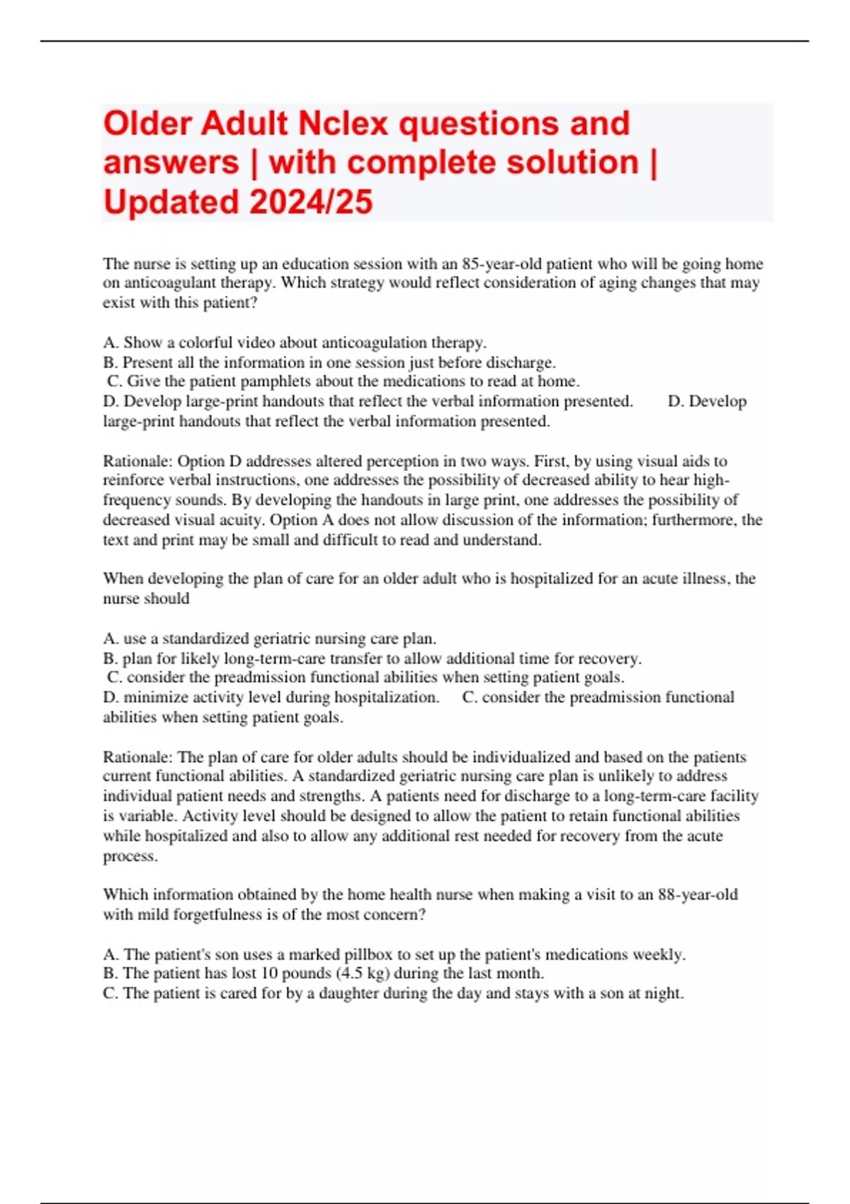 Older Adult Nclex questions and answers | with complete solution | Updated 2024/25