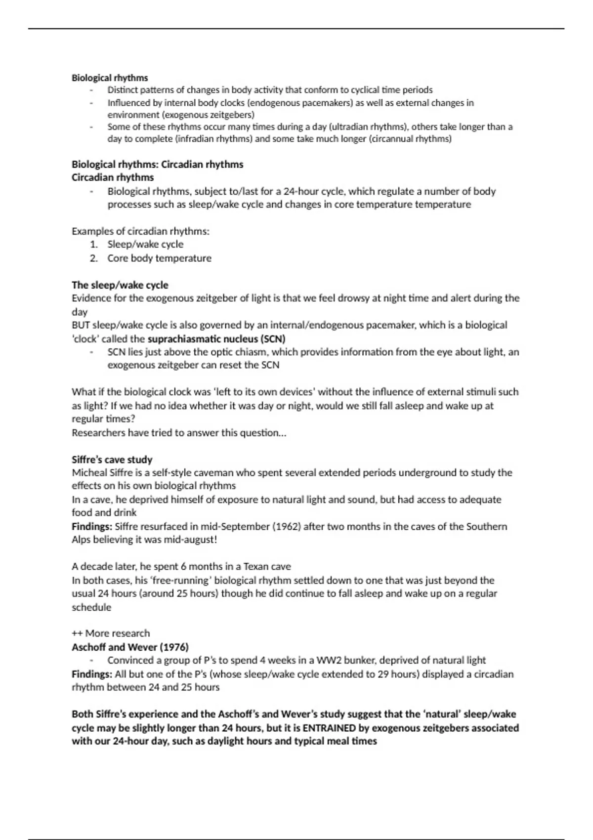 - For example, Siffre’s cave study was a case study so we cannot generalise the findings to all