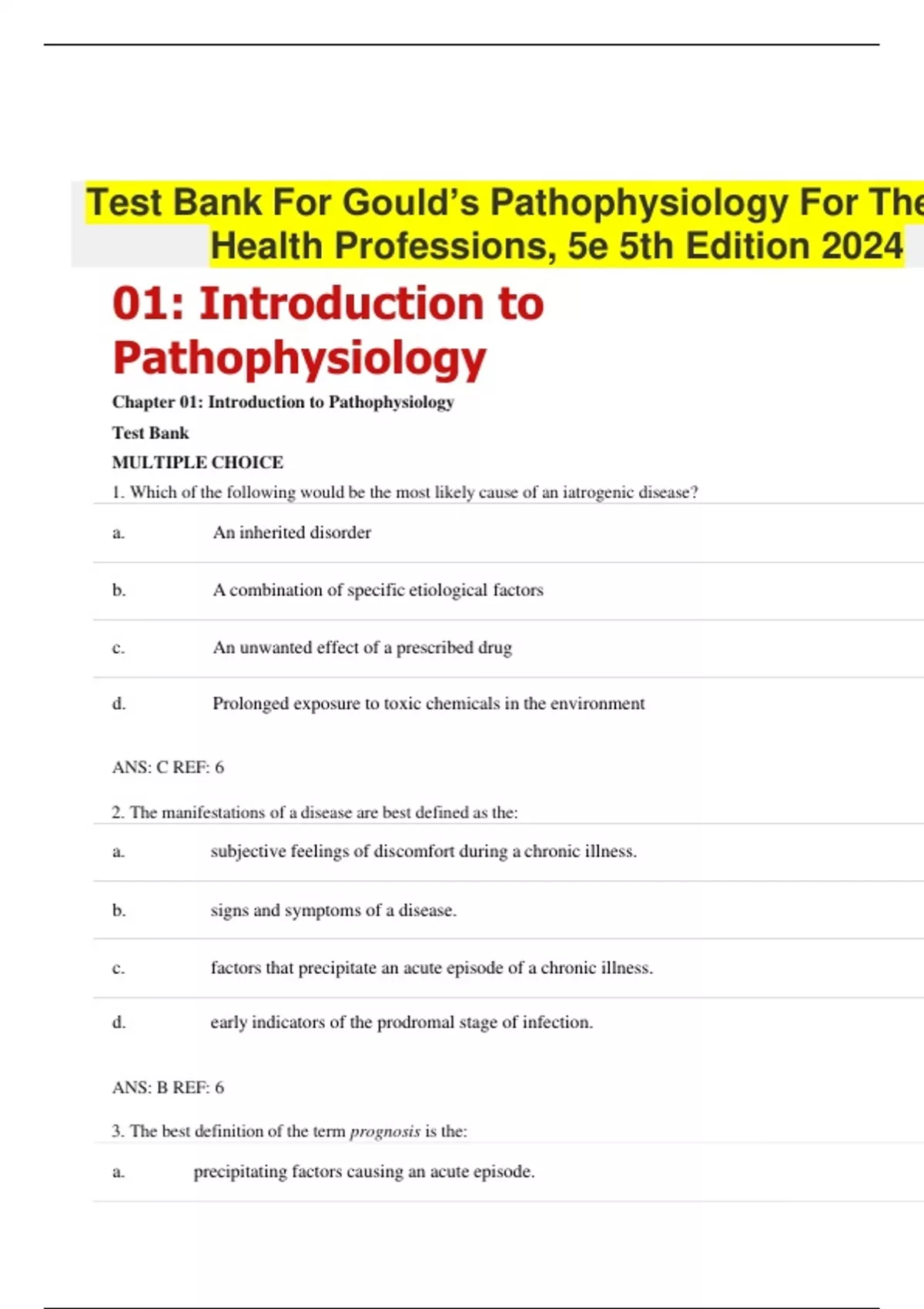 TEST BANK FOR GOULD’S PATHOPHYSIOLOGY FOR THE HEALTH PROFESSIONS, 5E 5TH EDITION 2024|QUESTIONS AND CORRECT ANSWERS|A+ GUARANTEED 2024