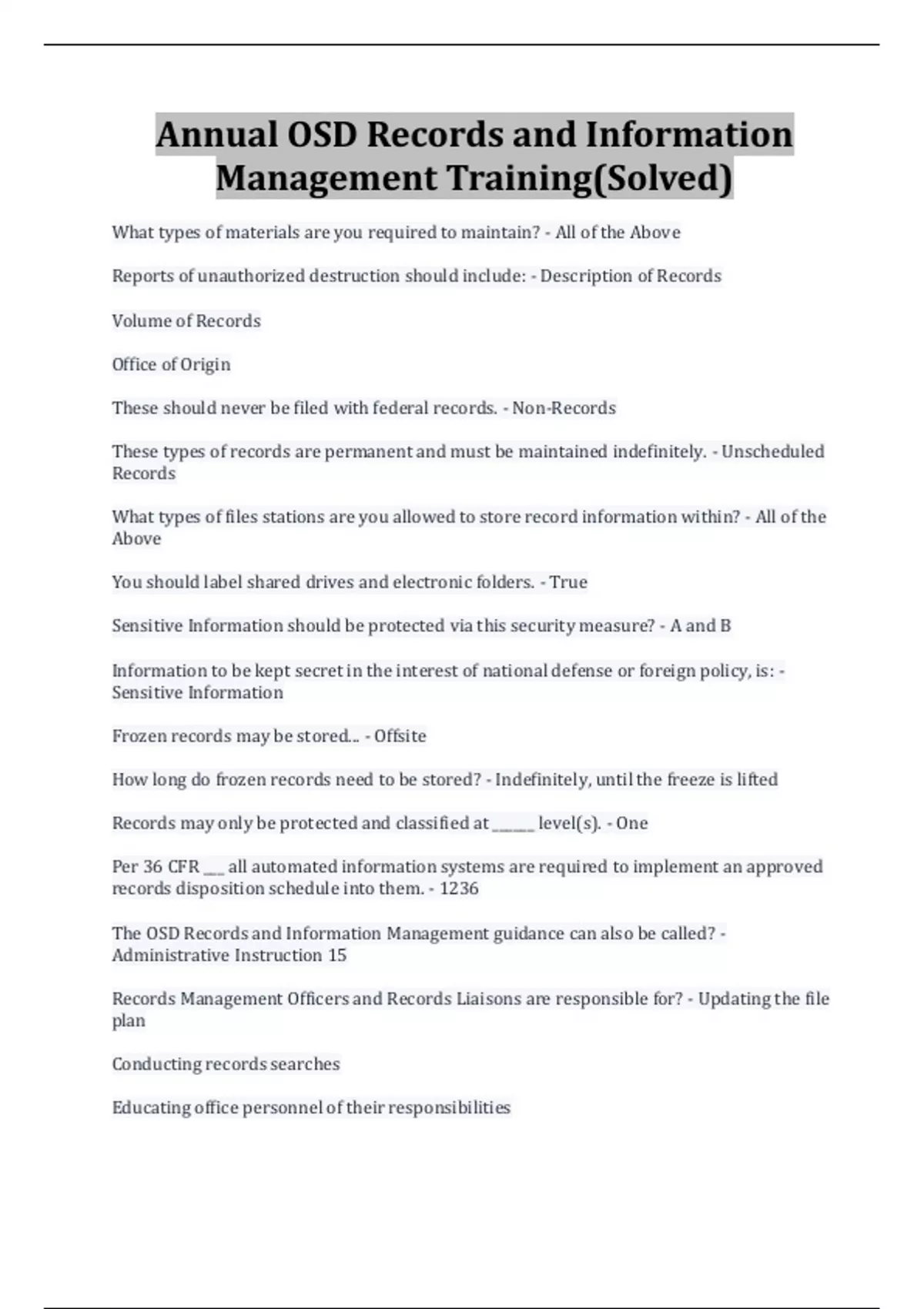 Annual OSD Records and Information Management Training(Solved)
