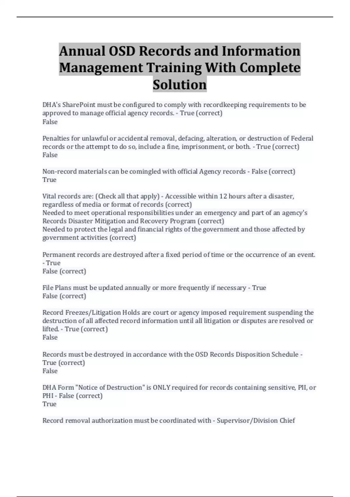 Annual OSD Records and Information Management Training With Complete Solution