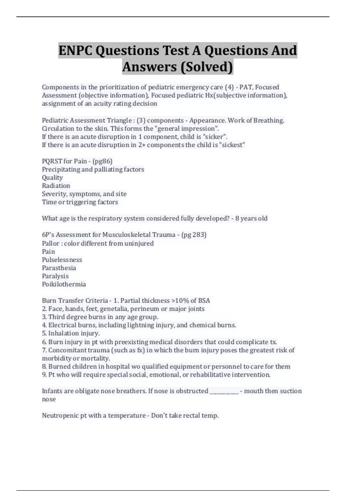 ENPC Questions Test A Questions And