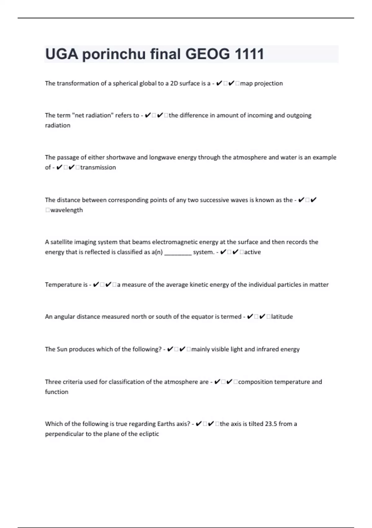 UGA porinchu final GEOG 1111|215 Questions with 100% Correct Answers | Verified
