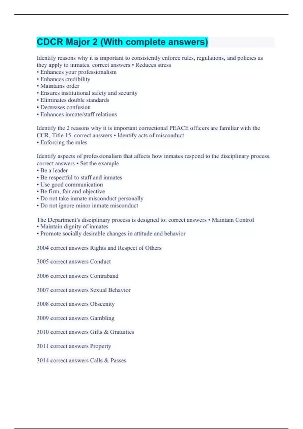 CDCR Major 2 (With complete answers)