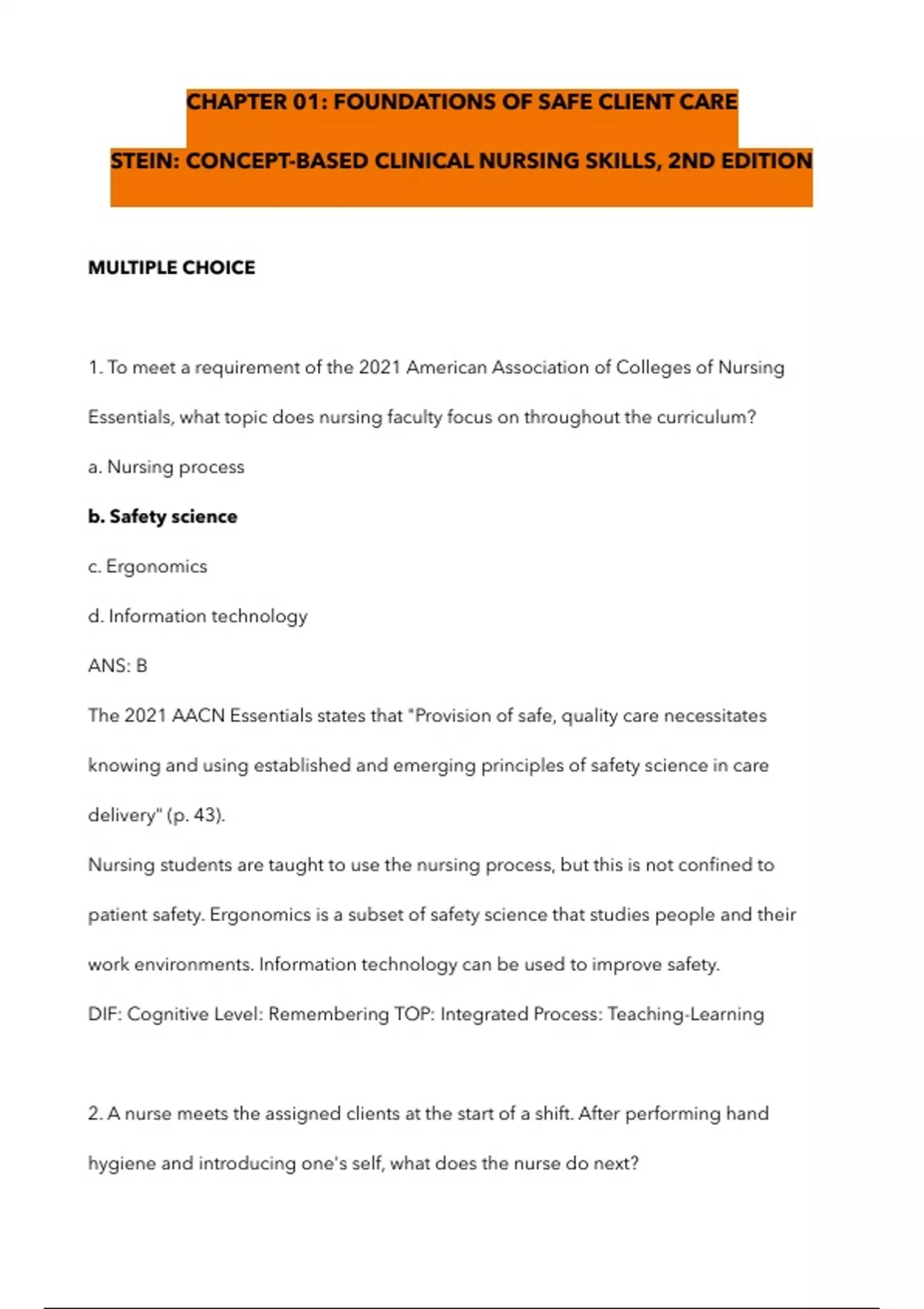 Test Bank Concept-Based Clinical Nursing Skills 2nd Edition by Loren Stein.