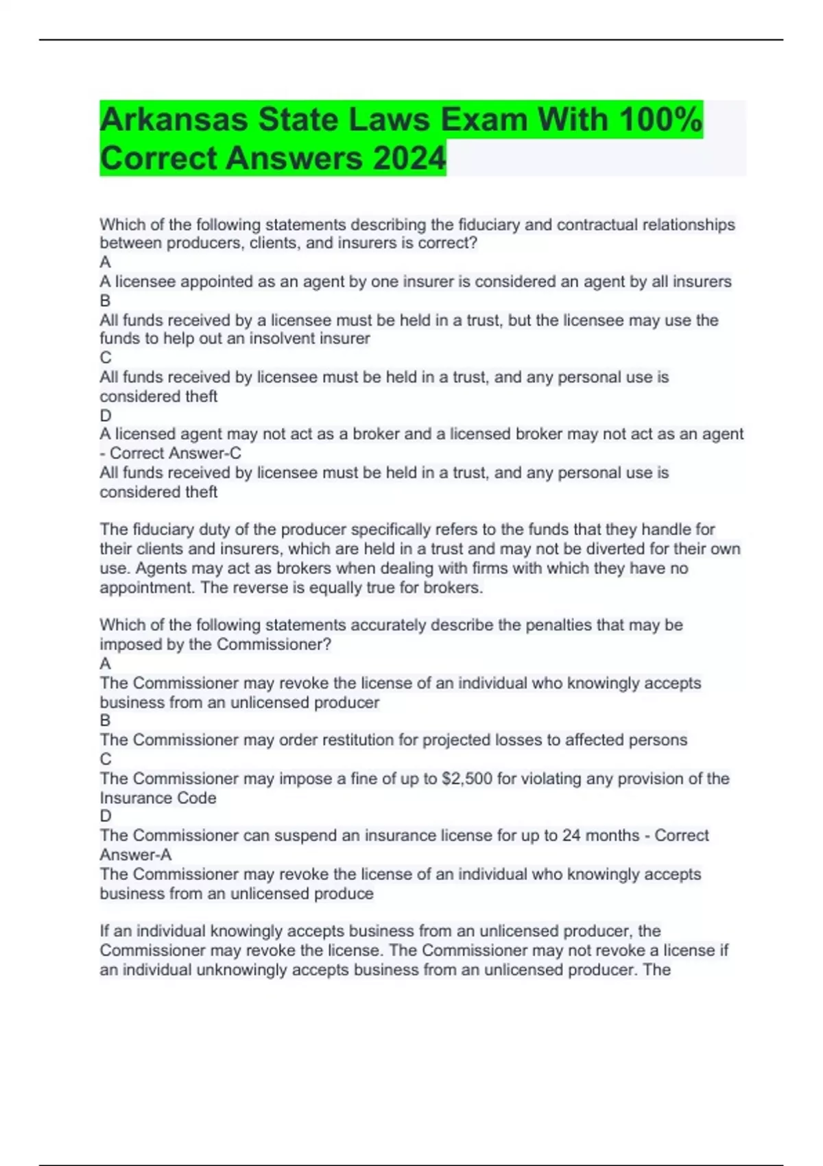 Arkansas State Laws Exam With 100% Correct Answers 2024