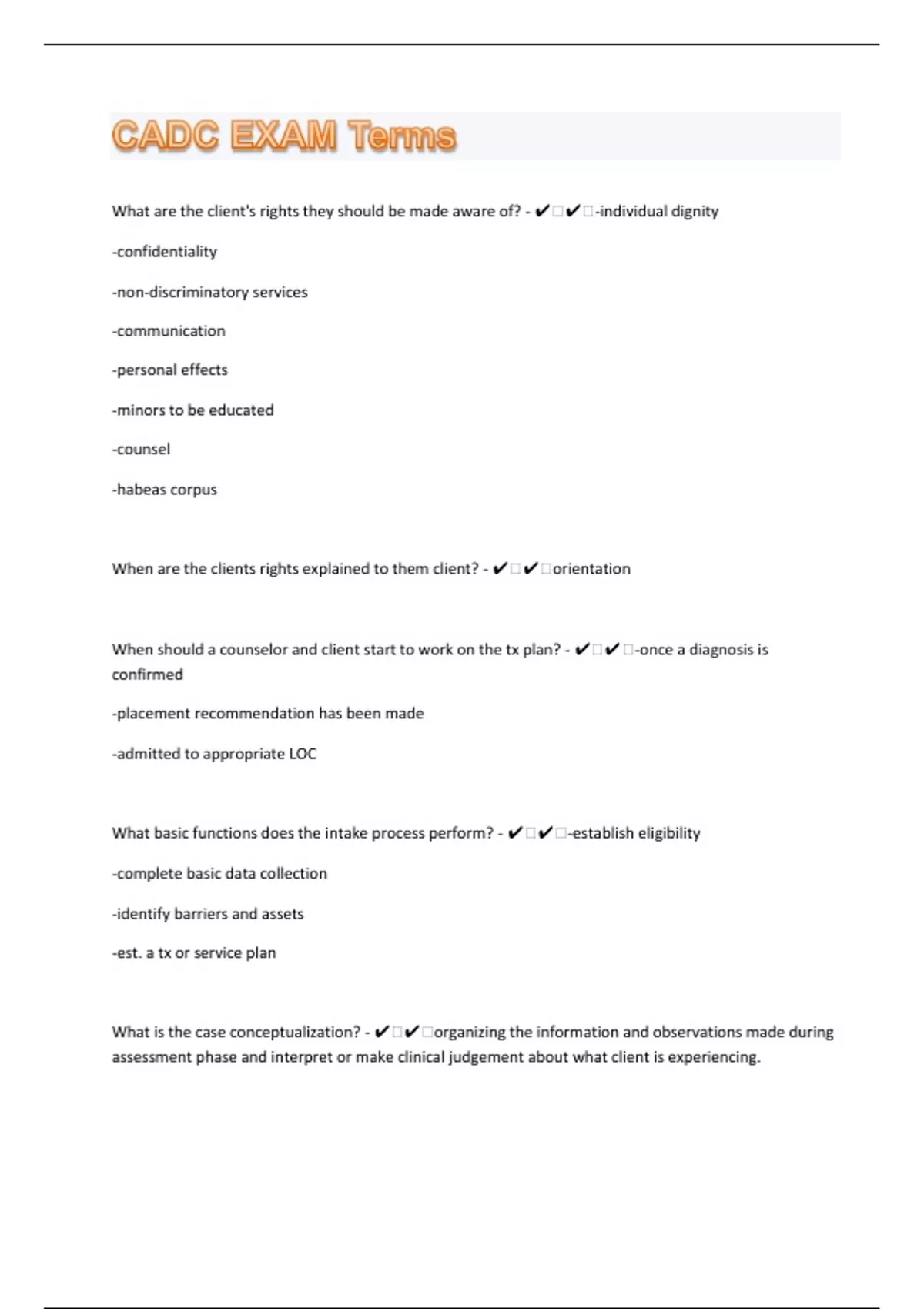 CADC 152 EXAM Terms Questions with 100% Correct Answers | Verified