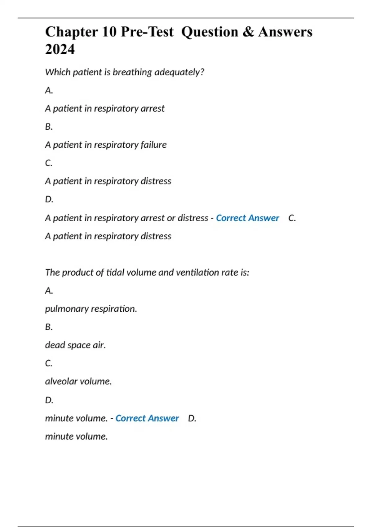 Chapter 10 Pre-Test Question & Answers 2024