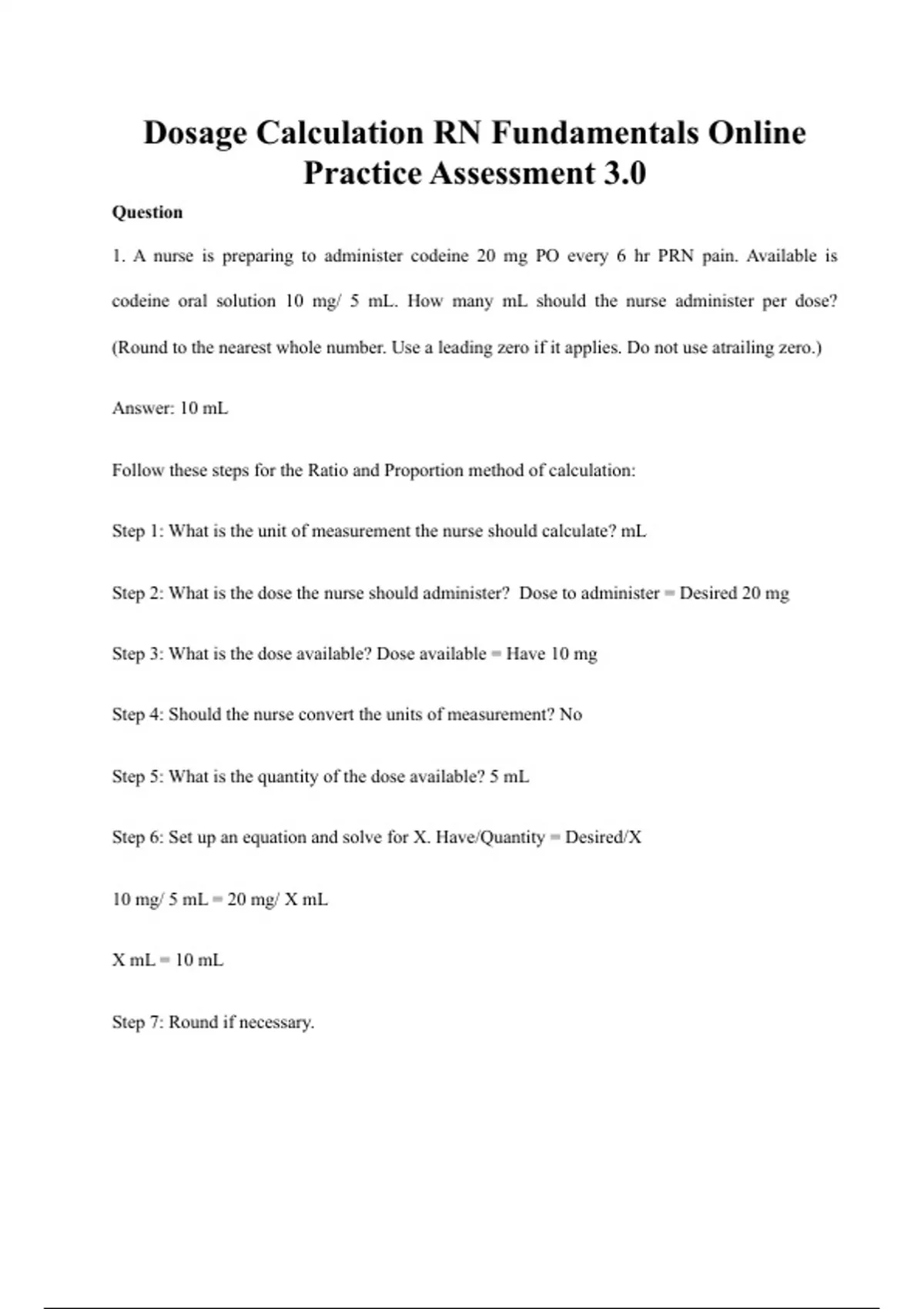 Step 2: What is the dose the nurse should administer? Dose to administer = Desired 20 mg