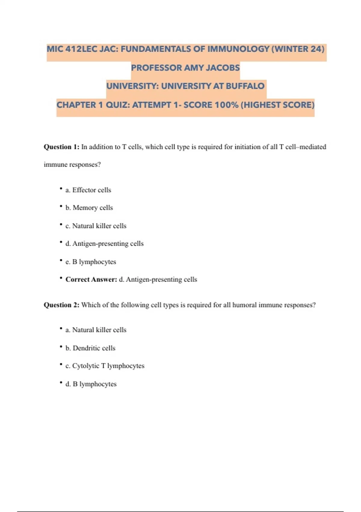 Question 1: In addition to T cells, which cell type is required for initiation of all T cell–mediated