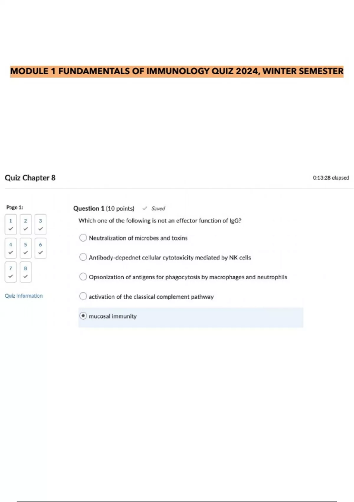 MODULE 1 FUNDAMENTALS OF IMMUNOLOGY QUIZ 2024, WINTER SEMESTER